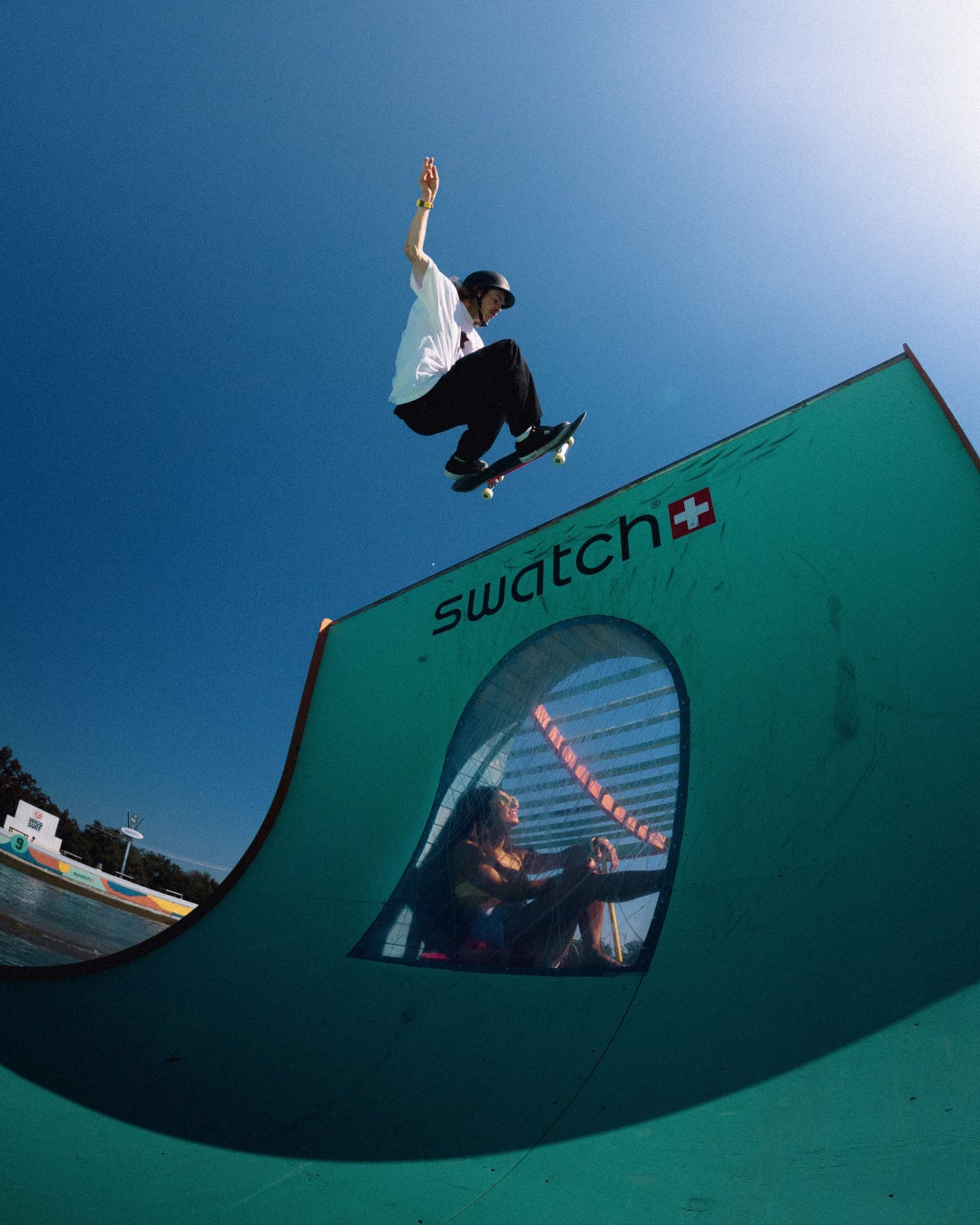 このユニークなイベントには、サーフィン、スケートボード、BMXといった各界のレジェンドから新星まで、30名を超える世界トップレベルのアスリートたちが揃い、各競技の旋風を巻き起こします。Swatch Proteamからは、サーフィン界のレジェンド Coco Ho(ココ・ホー) や Noah Beschen(ノア・ベッシェン)、マウンテンバイク界からは Sam Pilgrim(サム・ピルグリム) や Erik Fedko(エリック・フェドコ) といった、サーフィンにも造詣の深い選手たちが登場。さらにBMX界からは Matthias Dandois(マティアス・ダンドワ) と Kevin Peraza(ケビン・ペラザ)、スケートボード界からは Andy Anderson(アンディ・アンダーソン) と Gustavo Ribeiro(グスタボ・リベイロ) がそれぞれ最高のパフォーマンスを披露します。加えて、スノーボード界からは Kaishu Hirano(平野海祝)、スキー界からは Jesper Tjäder(ジェスパー・ジェイダー) が参加し、ジャンルの垣根を越えたパフォーマンスでイベントを盛り上げます。