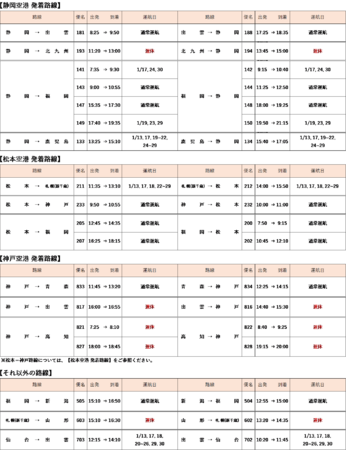 【追加で減便する路線・便】 1月12日(火)~31日(日) / 合計98便
