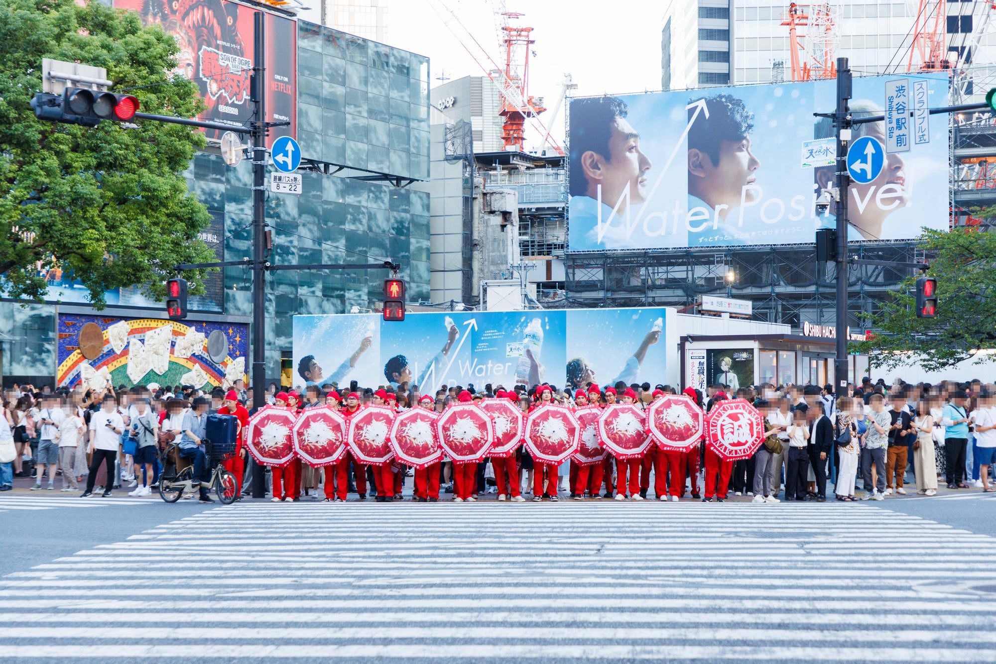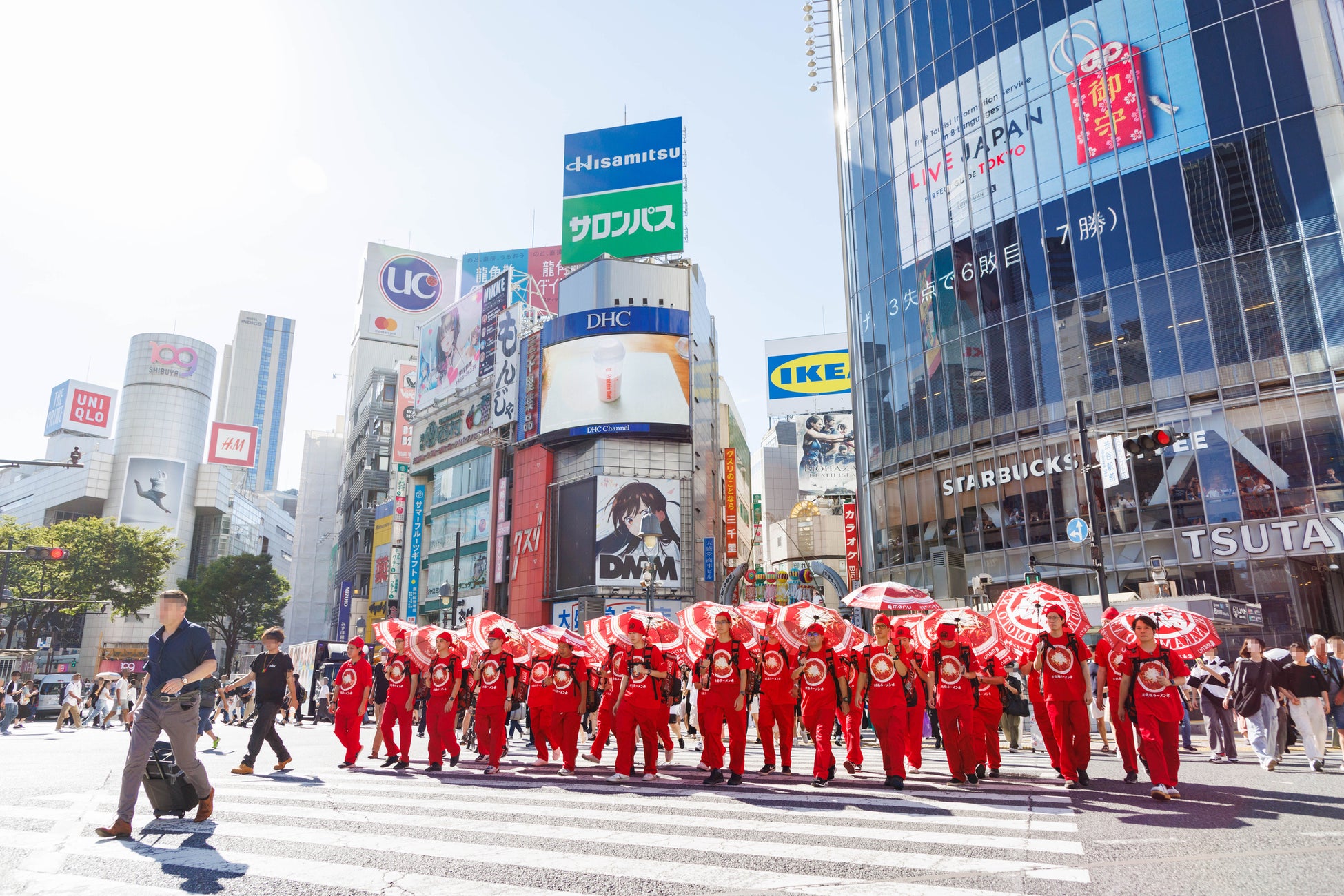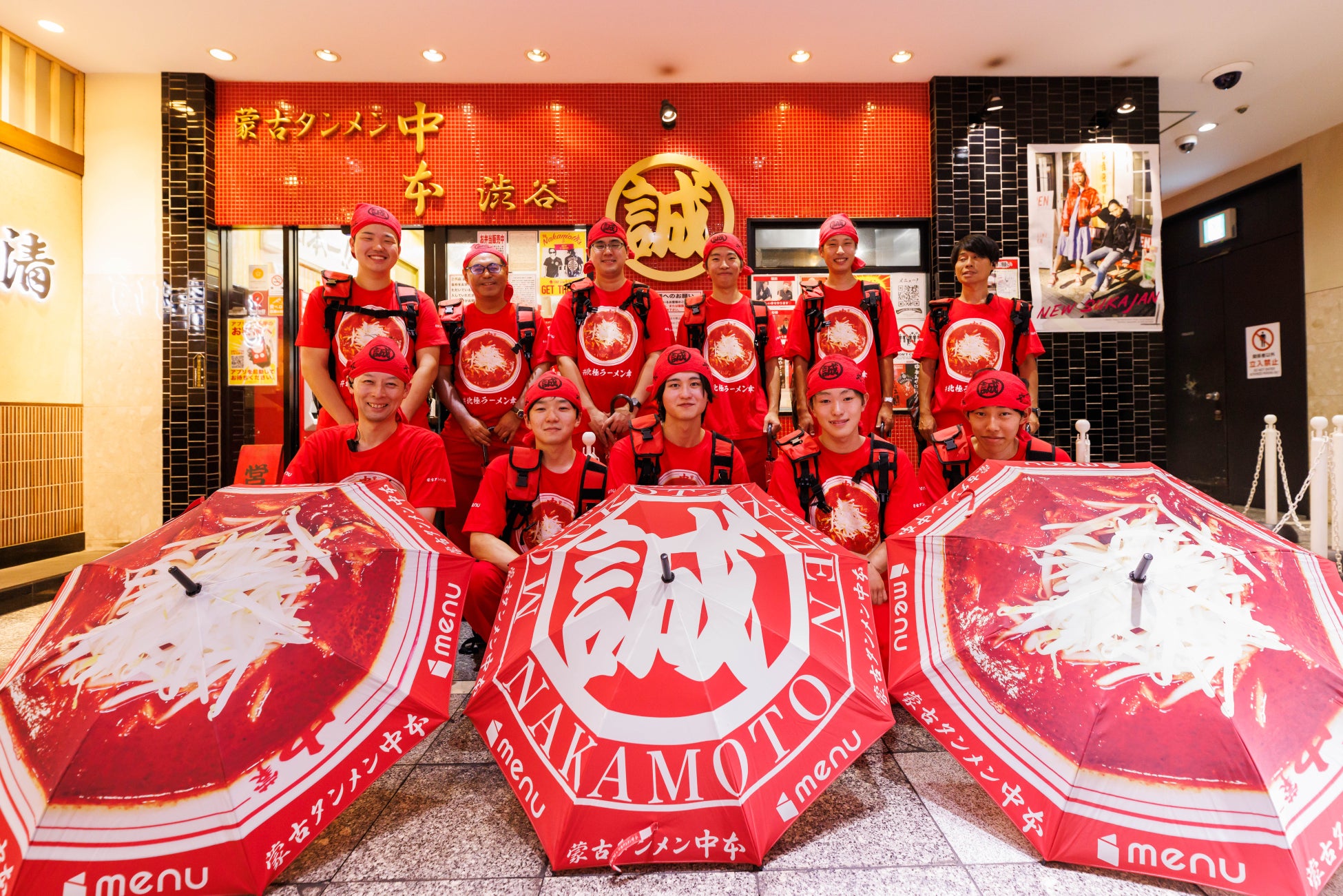 真夏の渋谷を“辛うまラーメン”が練り歩く!“蒙古タンメン中本傘”を差した中本軍団が、ゲリラプロモーションを敢行!