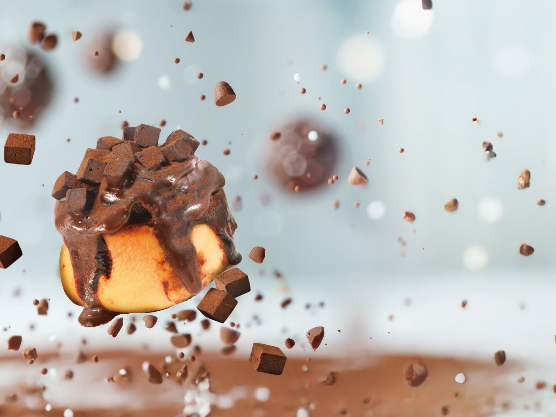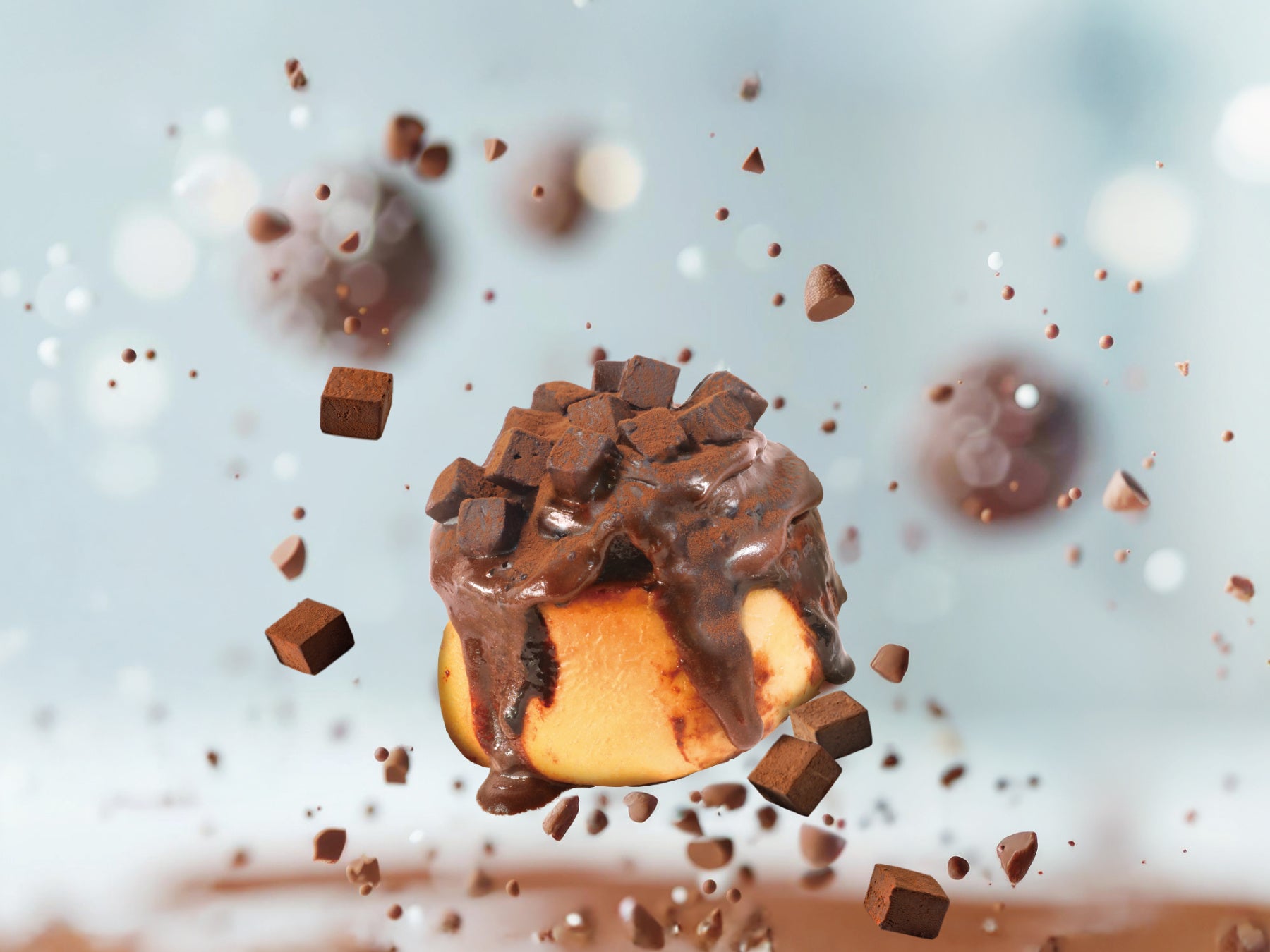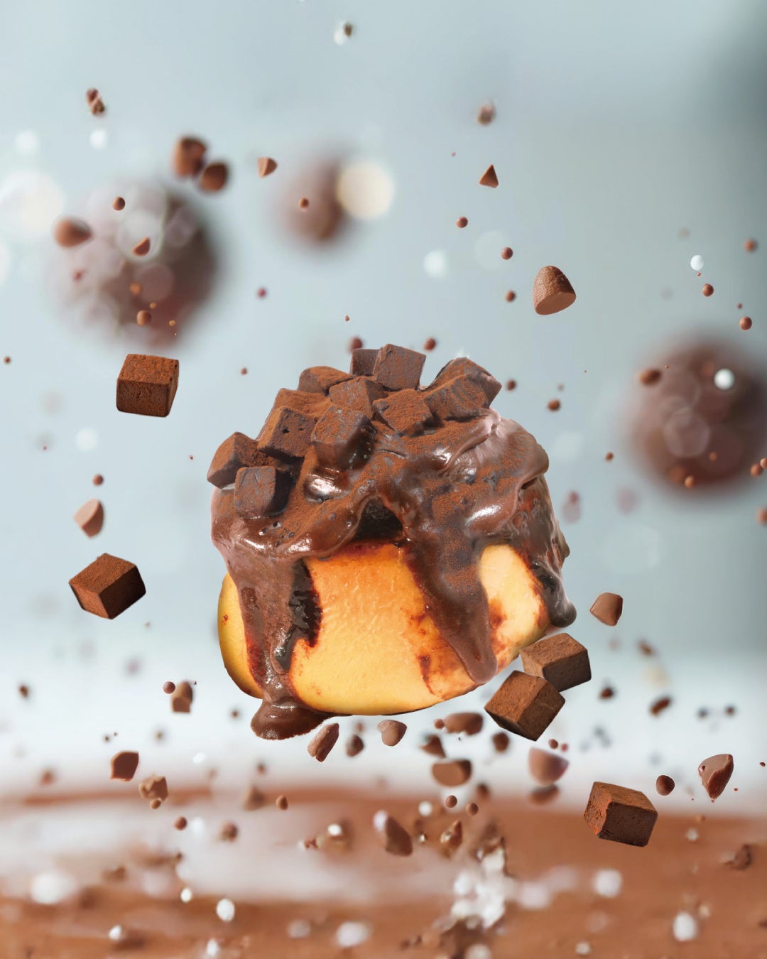 「チョコレートフロスティング」をたっぷりと、さらに「生チョコ」をトッピングしました。