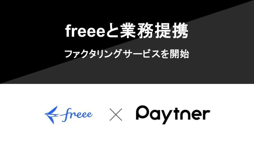ペイトナー株式会社(本社:東京都港区、代表取締役社長:阪井優、以下「ペイトナー」)は、フリー株式会社(本社:東京都品川区、CEO:佐々木大輔)と業務提携を行い、freee会計・freee請求書のデータを元に最短10分で請求書(=売掛金)を資金化できる「ペイトナーファクタリング with freee」の提供を開始いたします。