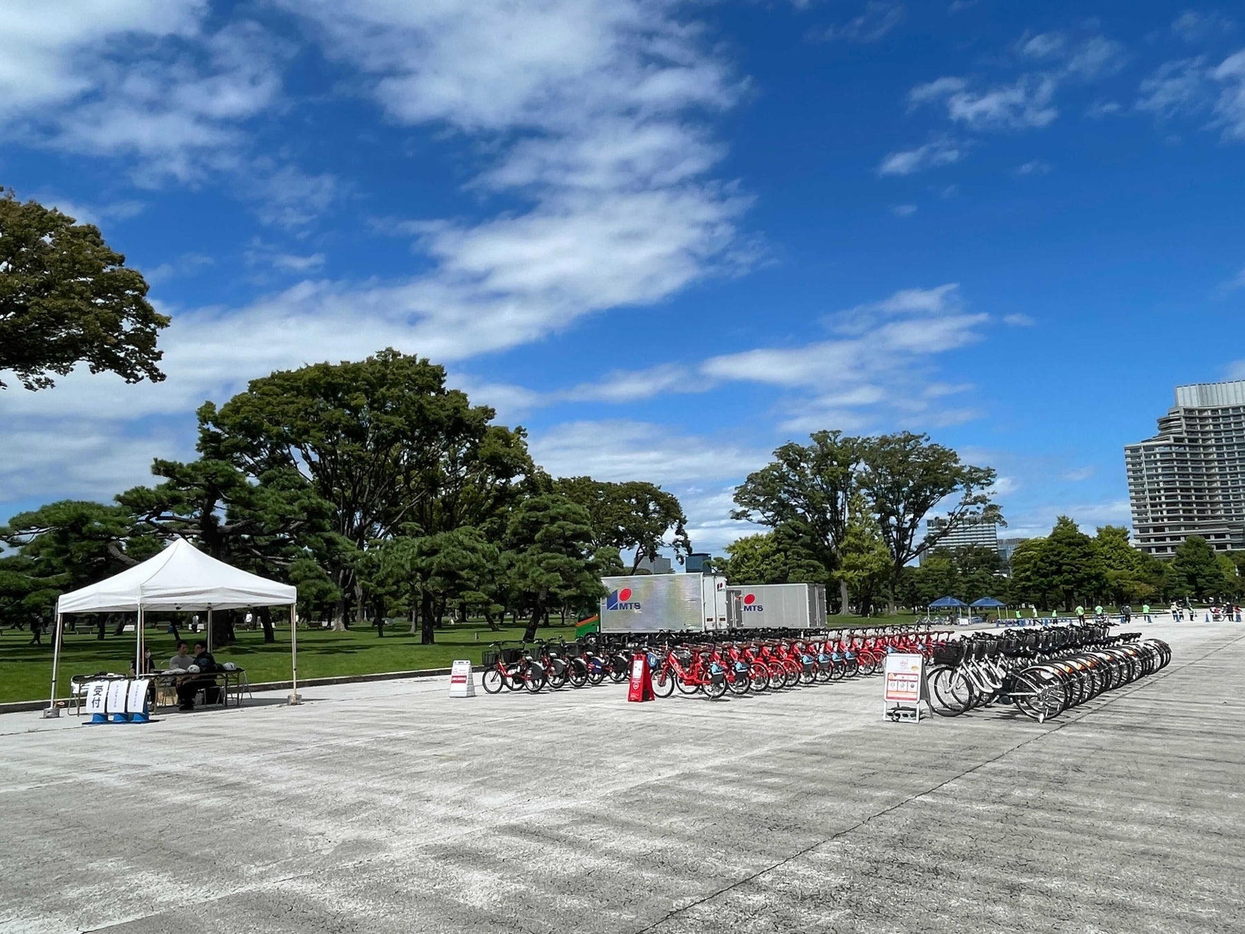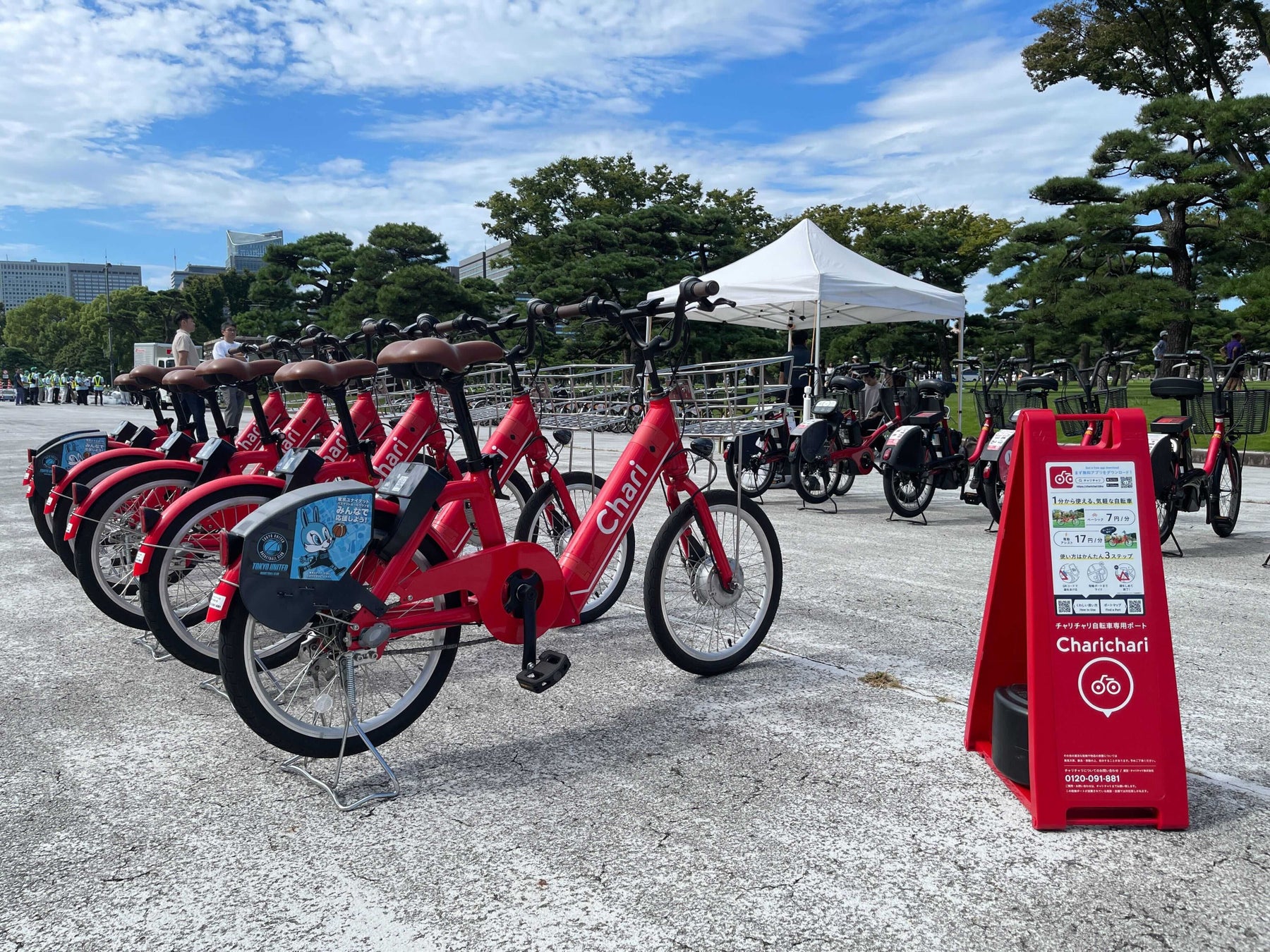 チャリチャリでは、この機会により多くの皆さまにパレスサイクリングの魅力を知っていただくとともに、北の丸公園へのアクセスなど都内の観光手段としてシェアサイクルを気軽にご利用いただくため、両日、皇居外苑に臨時ポートを設置し、本実証に参画しました。