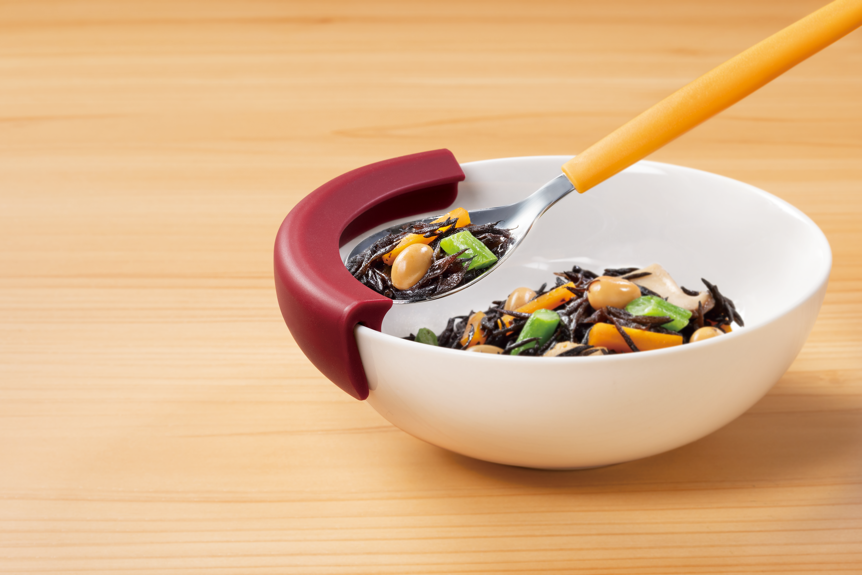 要介護者の残存機能を保つためには、できる限り自力で食事を摂取してもらうことが不可欠です。一方で、年を重ねるにつれて自分で食事をするのに時間がかかることが多くなるため、介助者が手を貸してしまい、自力での食事が難しくなることがしばしばあります。また、在宅介護の場合、特殊な形状の介護用食器を用意することが難しく、自力摂取の重要性を介助者が理解しつつも、過度な介助が行われる傾向があります。