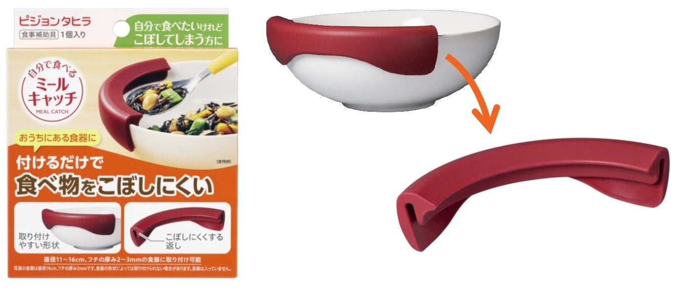 食器に取り付けるだけで食べ物をこぼしにくくする「自分で食べるミールキャッチ」が新発売