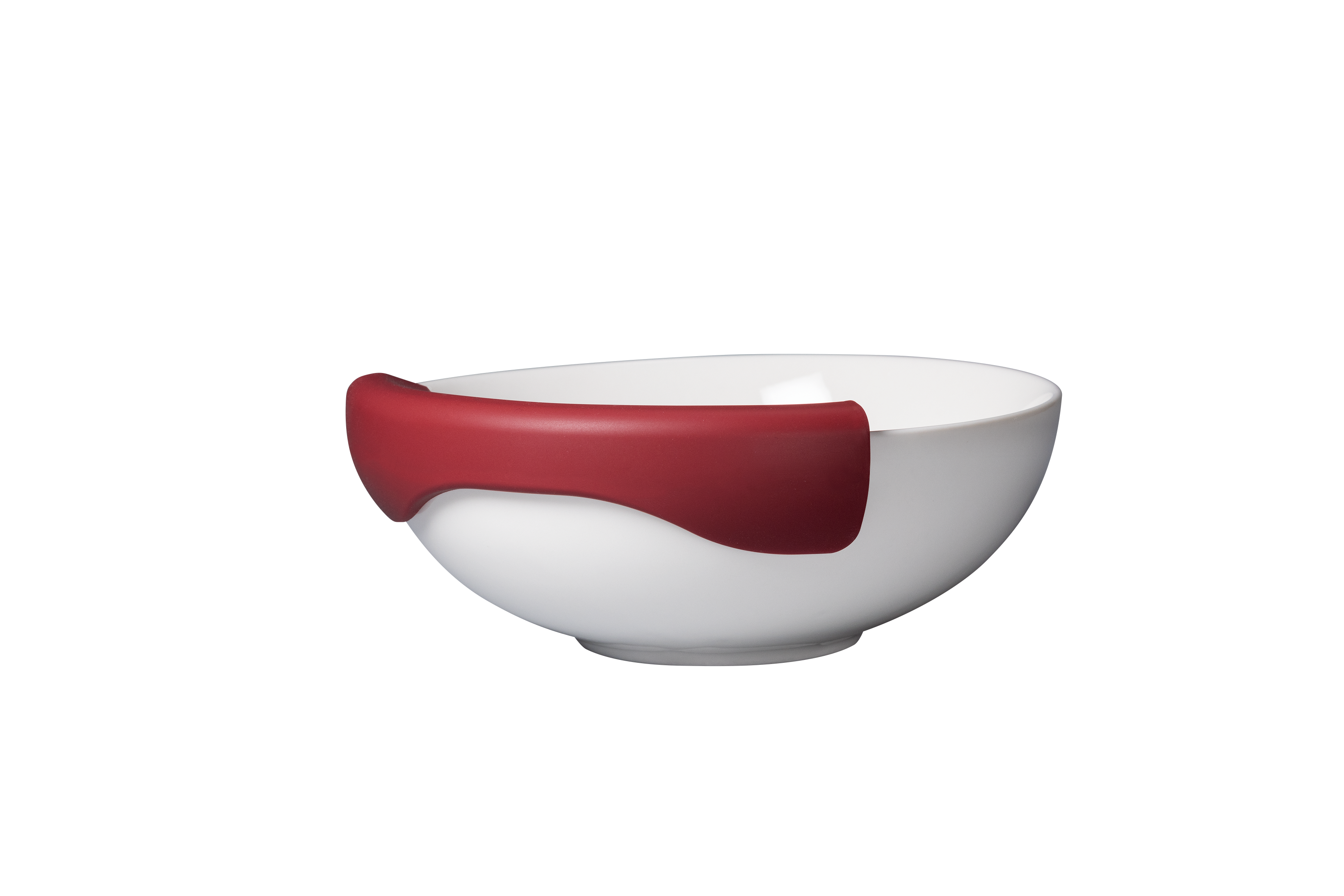 この度発売する「自分で食べる ミールキャッチ」は、普段お使いの食器に取り付けるだけで、食べ物をこぼしにくくするアタッチメント型の食事補助具です。柔らかいシリコーンゴム製で食器のフチに簡単に装着でき、独自の返し形状で食べ物をこぼしにくくします。愛用の食器に取り付けることで普段通りの食事がしやすくなり、自分で食べたいけれどこぼしてしまう方に最適※3。色は、高齢者でも視認しやすいあずき色です。「身体が不自由になっても、慣れ親しんだ普段の食器で通常通りに食事を楽しんでほしい」、「家族と囲む食卓で、楽しく食事をしてほしい」という想いを込めて開発しました。