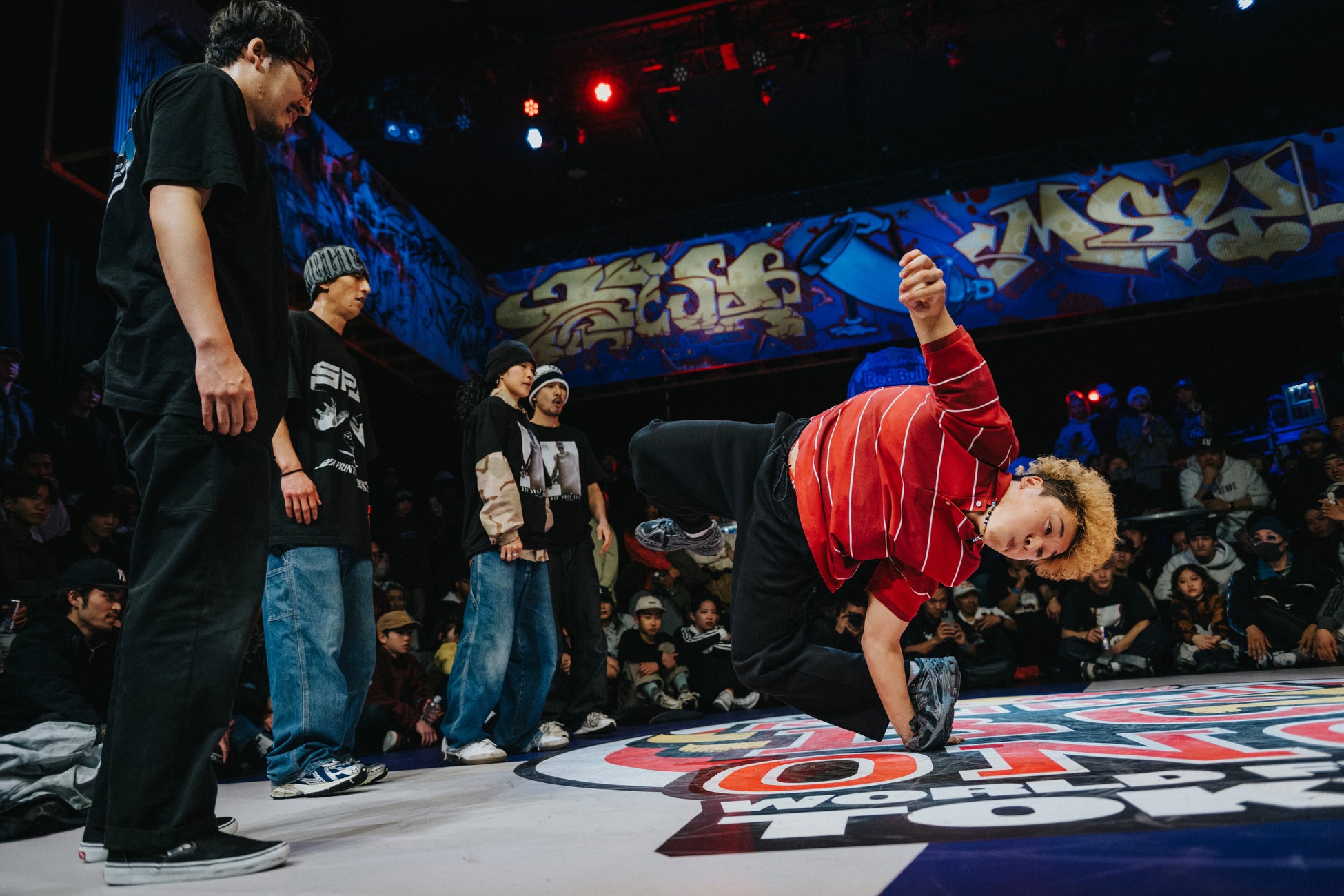 当日は、DJやビートメイカーによる音楽ライブが鳴り響き、会場はヒップホップカルチャーの自由な精神を象徴するグラフィティアートに包まれていました。そして、世界トップクラスのB-Boy & B-Girlたちが、この熱狂の空間で白熱のバトルを繰り広げました。