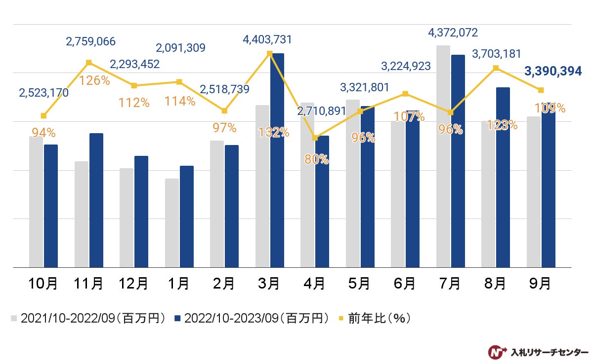 調査名:入札リサーチセンターマンスリーレポート(2023年9月度)