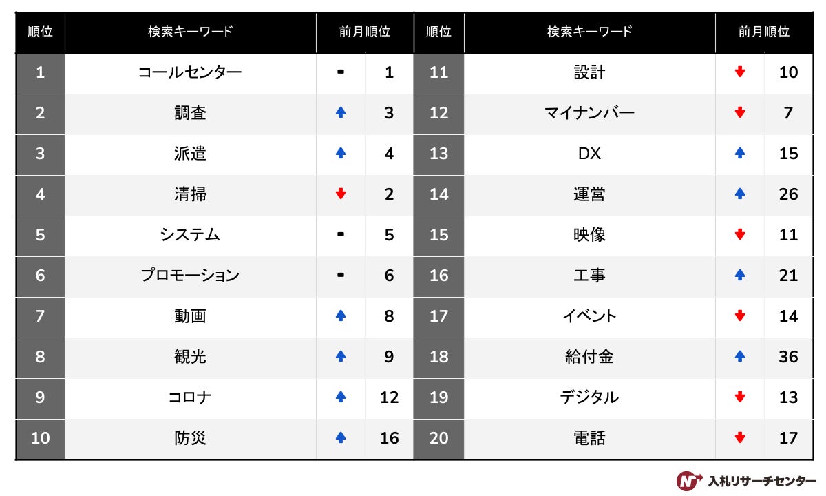 入札案件 検索キーワードは「給付金」が大幅に順位アップ 政府・与党による家計負担軽減のための給付措置検討の報道が影響