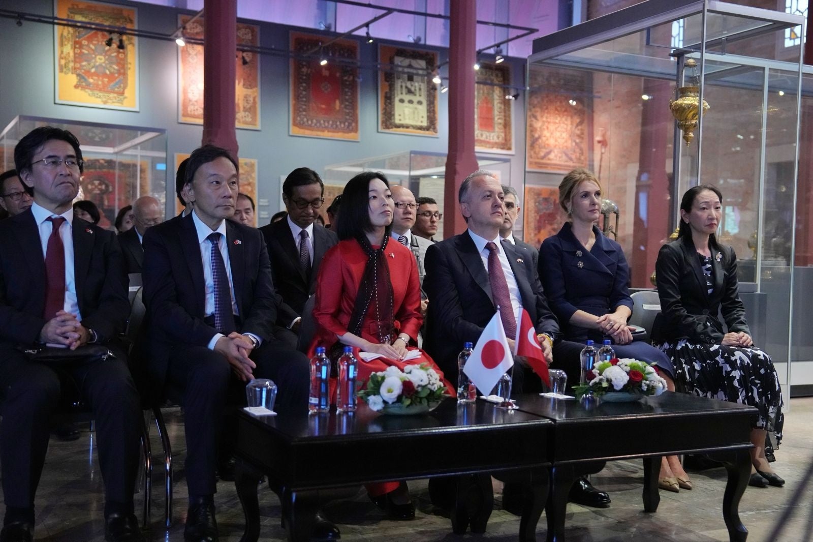 彬子女王殿下は、イスタンブルのトルコ・イスラム美術博物館にて「日本・トルコ外交関係樹立100周年記念:出光美術館所蔵 日本陶磁展」の開幕式にご臨席になりました。本展覧会では、日本の陶磁器の傑作59点がトルコで初めて公開され、昨年東京で開催され大好評を博したトルコ展の成功に応える形となっています。さらに、殿下はユルドゥズ宮殿の日本コーナーも視察されました。ここでは明治天皇からスルタンアブデュルハミト2世に贈られた歴史的な木工道具が展示されており、100年以上にわたる日トルコ友好の確かな証として紹介されています。