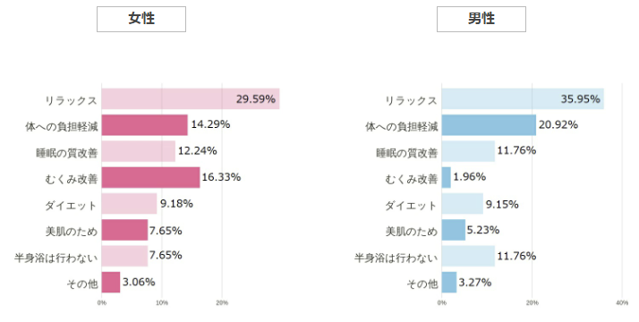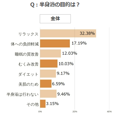 半身浴の目的として圧倒的多数となったのは“リラックス”。