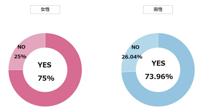男女別に見てみても、両者とも7割以上で大きな差は見られません。