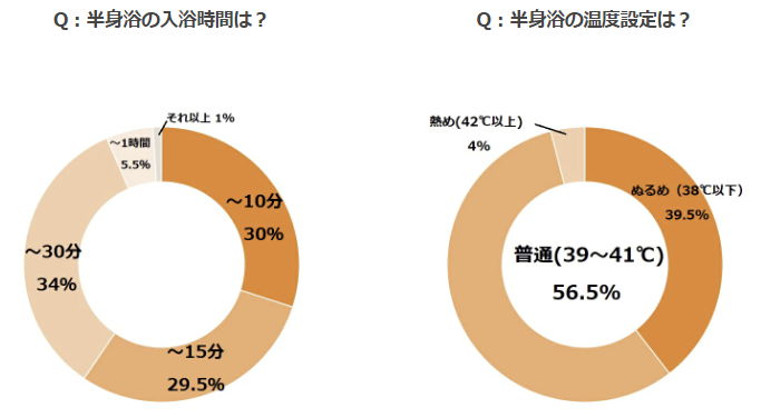 では、半身浴を行っている人は、どのくらいの時間・どくらいの温度で入浴しているのでしょうか。