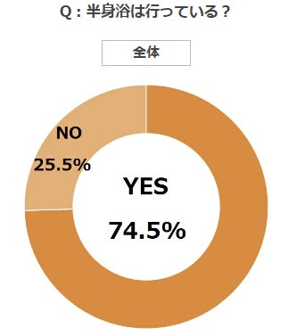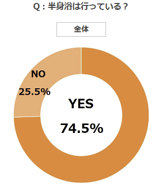 全体的に見ると、半身浴を行っているという人は7割以上と高い結果に。