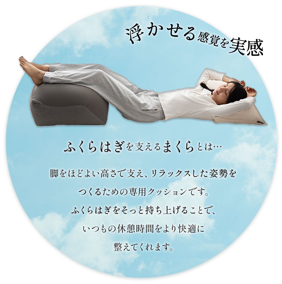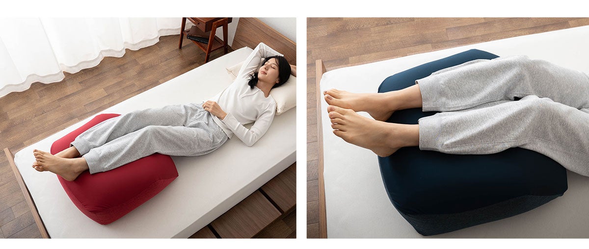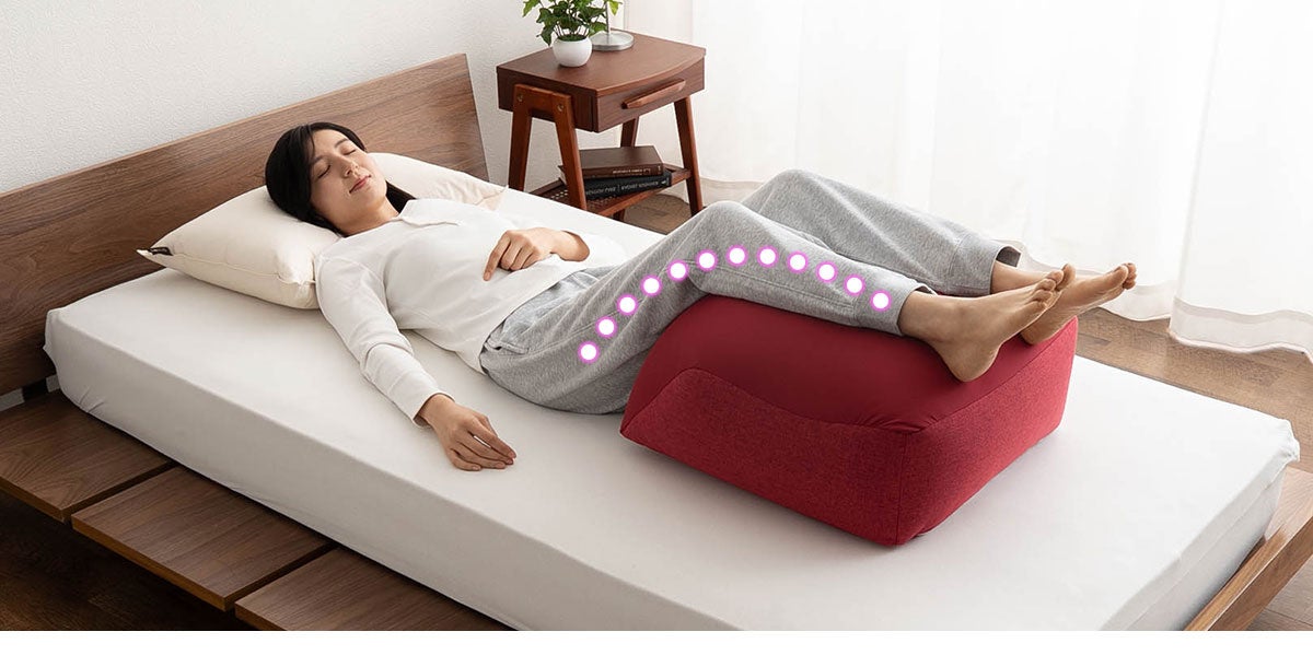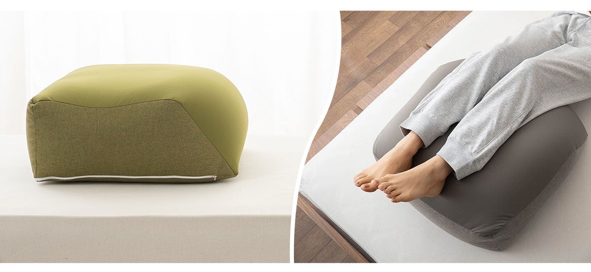 置くだけ・乗せるだけでケアできる続けやすさ。『ふくらはぎを支えるまくら』は毎日のくつろぎ時間に、心地よく寄り添います。