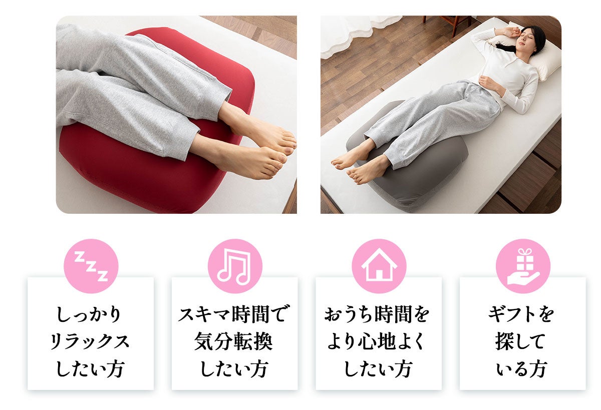 シリーズ累計30,000個を販売する人気のケアまくらシリーズより“ふくらはぎを支えるまくら”が新登場!自宅でできる“ひとつ上のリラックス”。大切な方への贈り物としてもおすすめです。