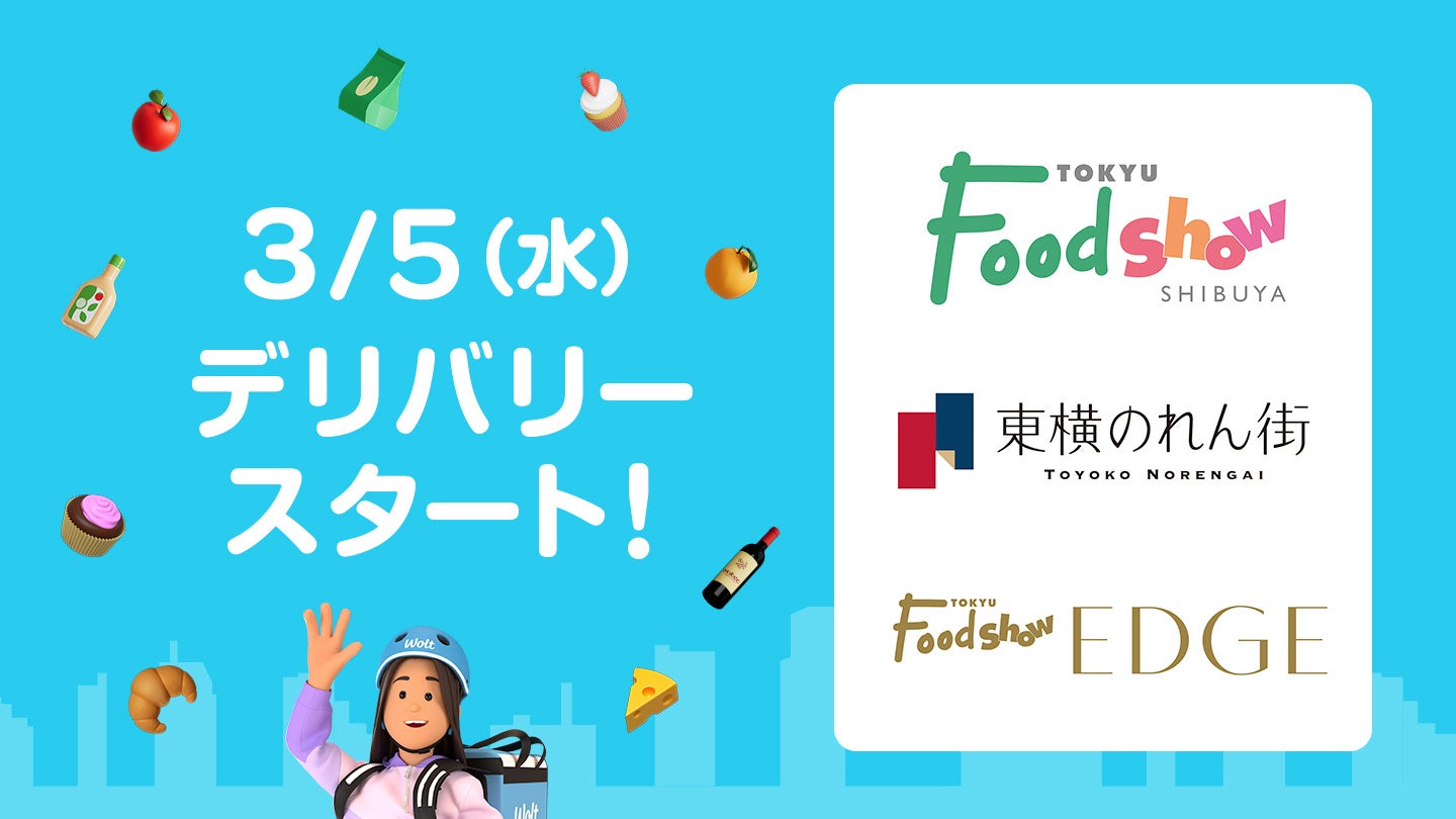 デリバリーサービス「Wolt(ウォルト)」を展開するWolt Japan株式会社(本社:東京都渋谷区、代表:ナタリア・ヒザニシヴィリ、以下 Wolt)は、2025年3月5日(水)より、株式会社東急百貨店が運営する「渋谷 東急フードショー」と、「東横のれん街」「東急フードショーエッジ」の3店舗からのデリバリーを6月末までの期間限定で実施いたします。お客様は、渋谷で人気のデパ地下グルメの数々をWoltでご注文いただくことができます。