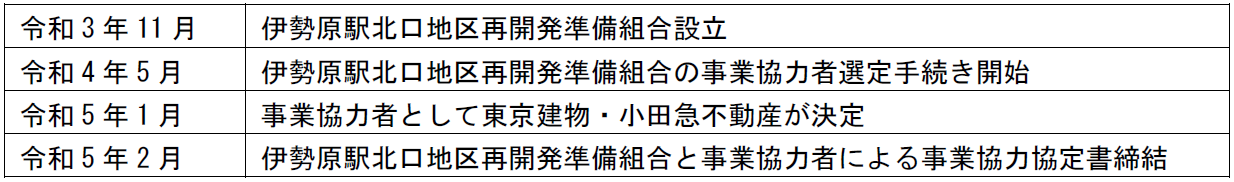 本事業は、小田急小田原線「伊勢原」駅に近接する約1.5haのエリアにおいて、魅力的な周辺環境と生活利便性の高さを活かし、土地の有効・高度利用など、新たな定住を促す住環境を整備するとともに、交通結節点として駅前広場や街路の整備を図ることにより、市の玄関口にふさわしい活力や魅力の創出を目的として進めているものです。東京建物と小田急不動産は今後、準備組合や地権者の皆様、伊勢原市とともに本事業を推進し、本エリアや周辺の更なる発展に貢献してまいります。