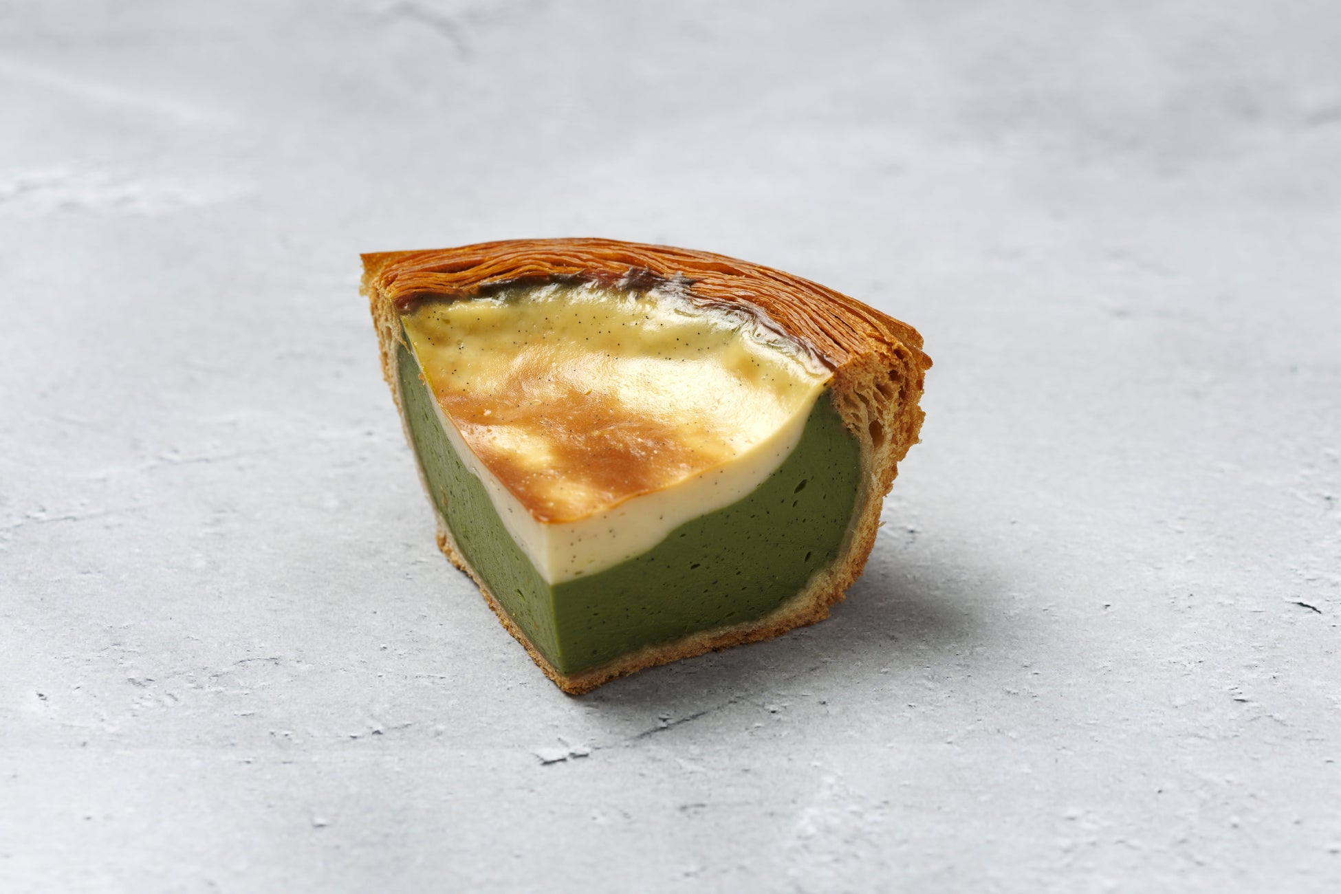 パイ生地に、抹茶・レモンカスタードの二層仕立てのフランを流し込んだ焼き菓子