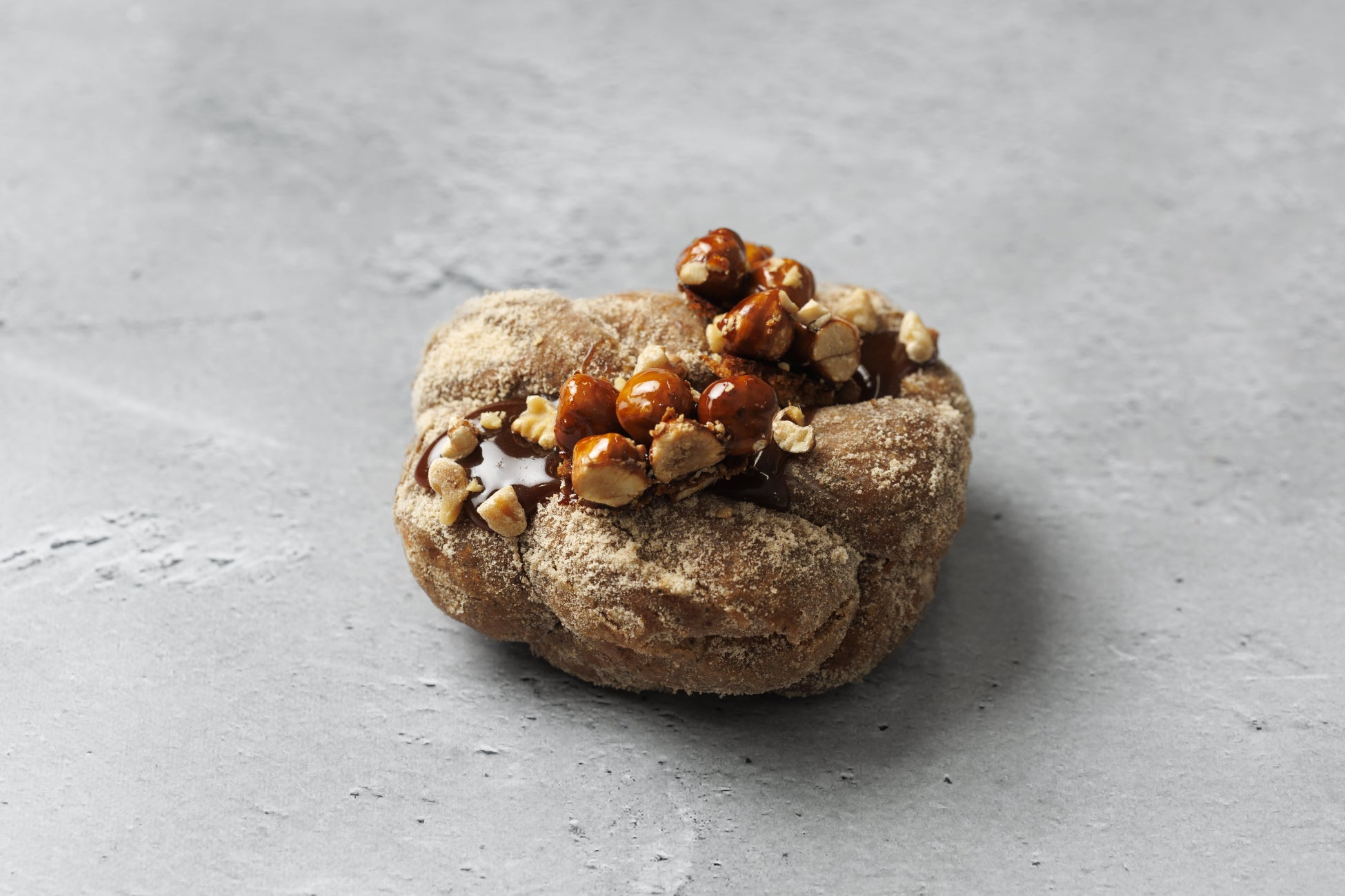アールグレイ茶葉を混ぜたドーナツ生地に、ヘーゼルナッツやソースをあしらいました