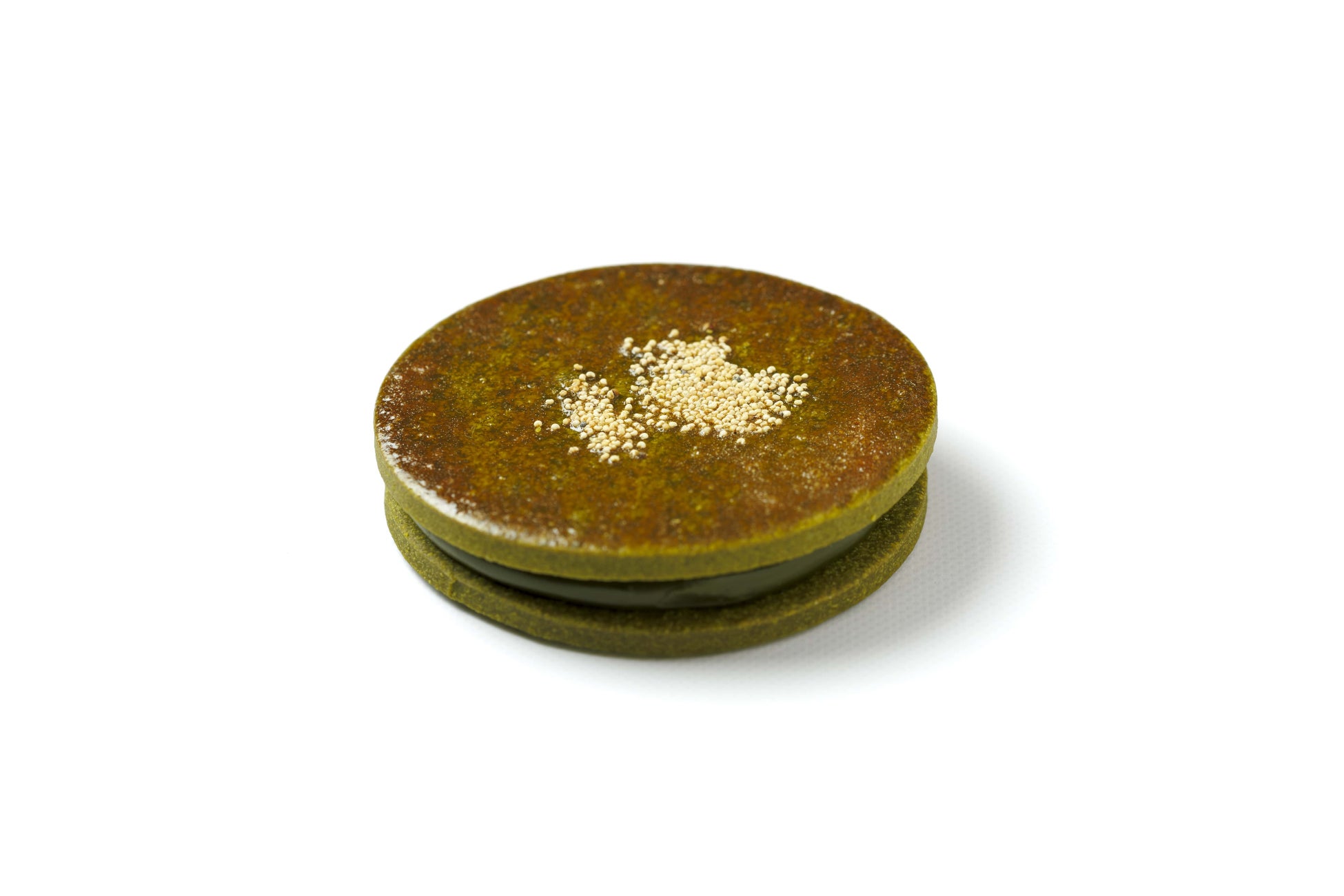 抹茶クッキーに、宇治抹茶塩キャラメルクリームと柚子の砂糖漬けをサンド