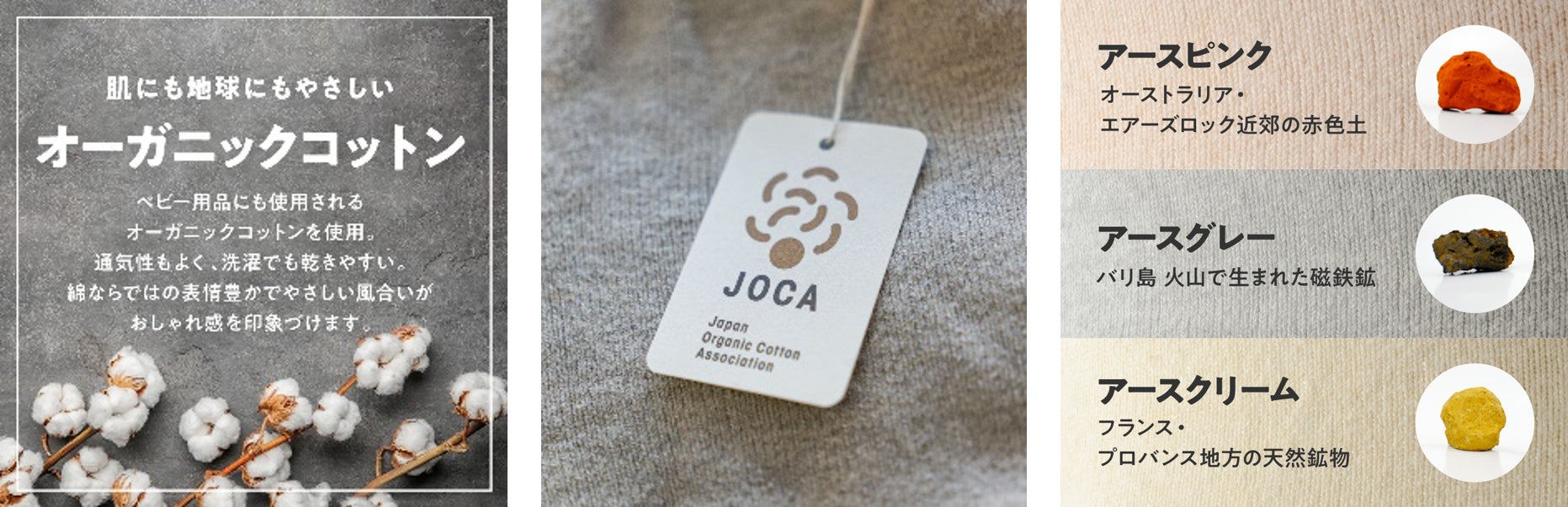 左からアースピンク、アースグレー、アースクリーム