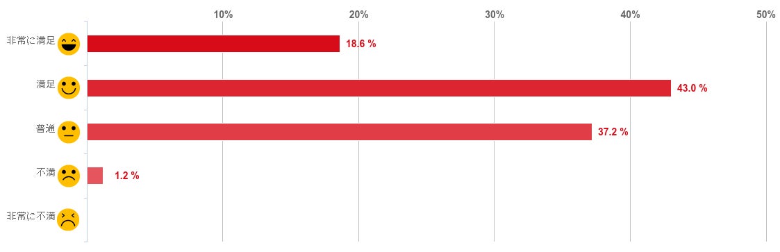 レイクの即日融資の満足度評価では、「非常に満足」「満足」との評価が合計で6割以上集まった。