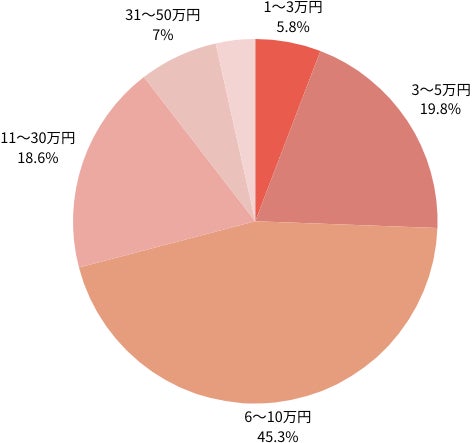 レイクで即日融資を受けた人の借入希望額は「6~10万円」が最も多く、概ね50万円以内に設定していることがわかった。