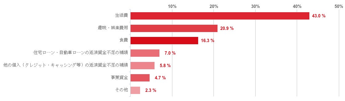 回答者の4割以上が即日借入したお金を「生活費」に使っていた。レイクで即日融資が可能なことは、「生活費」を必要とするユーザーにとって大きなメリットになっているといえる。