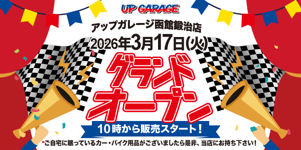 カー&バイク用品のリユース専門店「アップガレージ」を全国展開する株式会社アップガレージグループ(本社:神奈川県横浜市、代表取締役社長:河野映彦、東証スタンダード市場:7134)は、2026年3月17日(火)に、フランチャイズ店の「アップガレージ函館鍛治店」、併設店として「タイヤ流通センターアップガレージ函館鍛治店」を新規出店いたします。