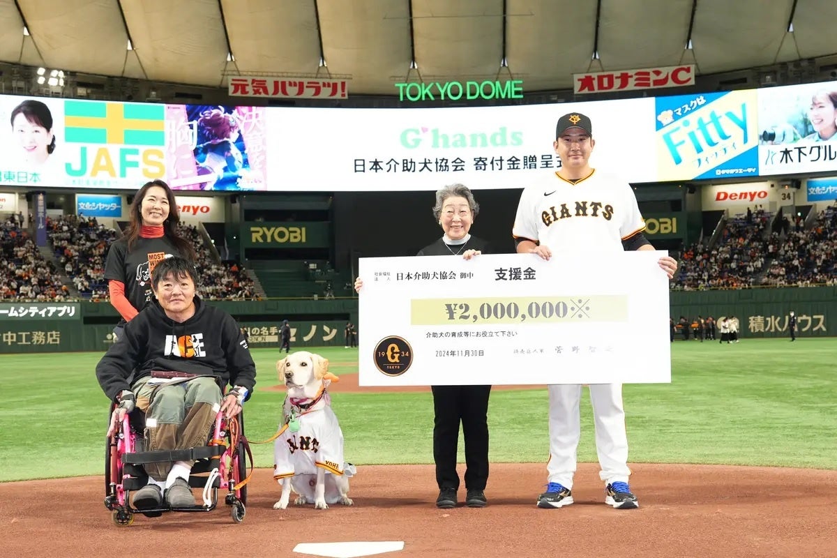 11月30日(土)「ジャイアンツ・ファンフェスタ 2024」内で行われた贈呈式に参加した協会の橋本久美子会長は「菅野投手に介助犬の普及活動にご尽力いただき始めてから10年が経ちました。継続的にご支援いただいているおかげで、多くの皆様が介助犬を知っている社会になり大変嬉しく思っております。今回の支援金も介助犬を必要としている方々へ、しっかりと活用させていただきます。」とコメントをしている。
