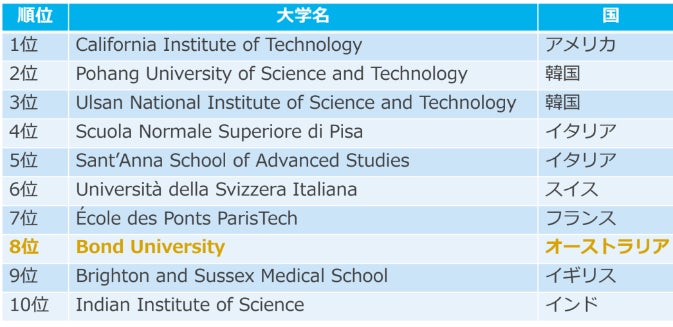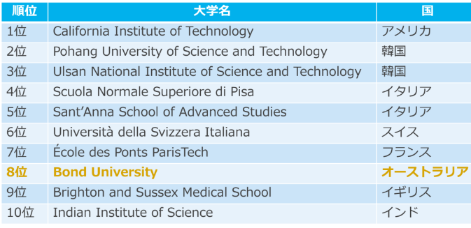 この度、BOND大学が、Times Higher Education World University Rankingsが選ぶ「The world’s best small universities 2023」で8位に選ばれたことをお知らせいたします。