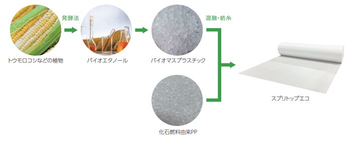 原料にバイオマスプラスチックを一部使用したポリプロピレンスパンボンド不織布です。