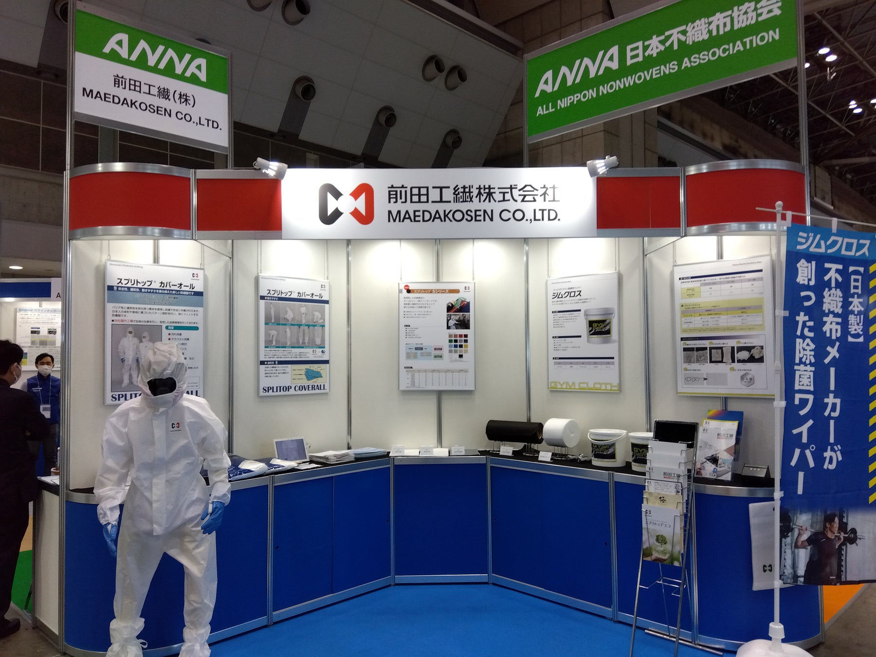 今回は、コスト、リサイクル性に配慮した環境配慮型不織布や自社のバリア性の高い不織布を使用した化学防護服「スプリトップ🄬カバーオール」、多彩な機能性付与・二次加工にも対応するオーダーメイド不織布等を展示いたします。