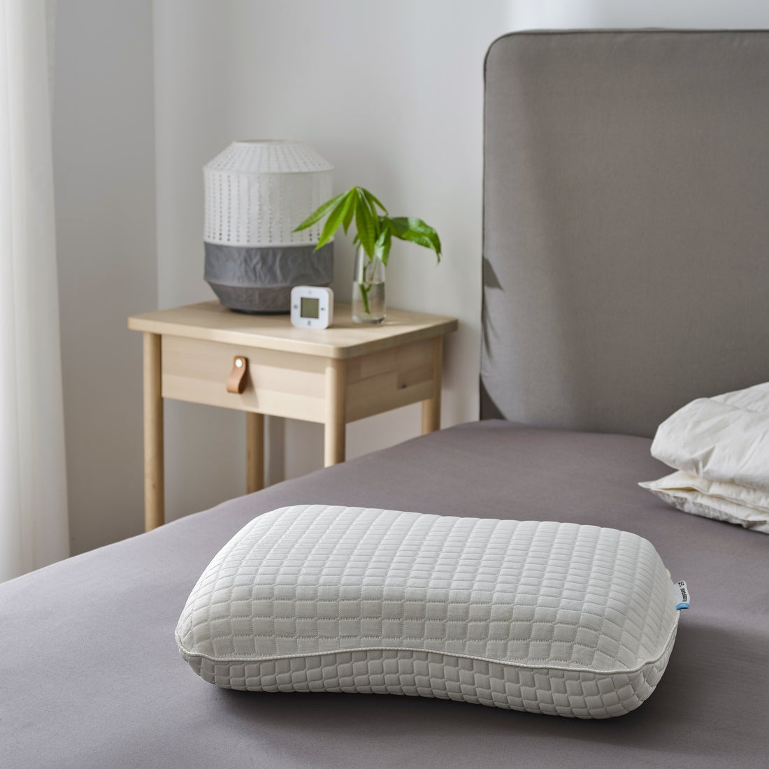 低反発フォームを使ったエルゴノミクス枕の片面には、ジェルの層を配して、ひんやりとした寝心地を実現。暑さや湿気による不快感で目覚めることなく、ひと晩中心地よく眠れます。