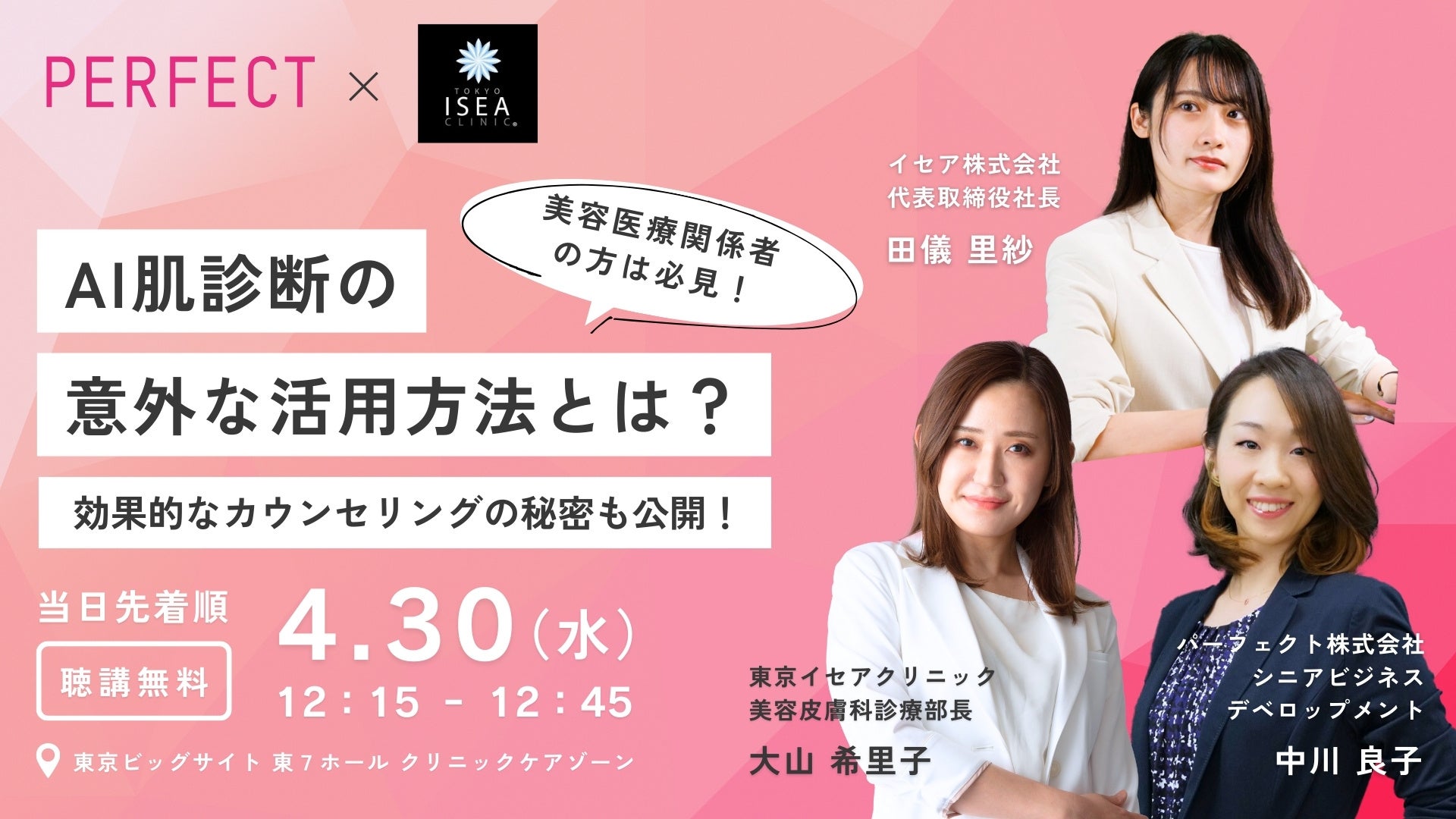 パーフェクト社「ビューティーワールドジャパン東京」に出展 ‐ AI肌解析の活用方法をテーマに、東京イセアクリニックとプレゼンテーション開催