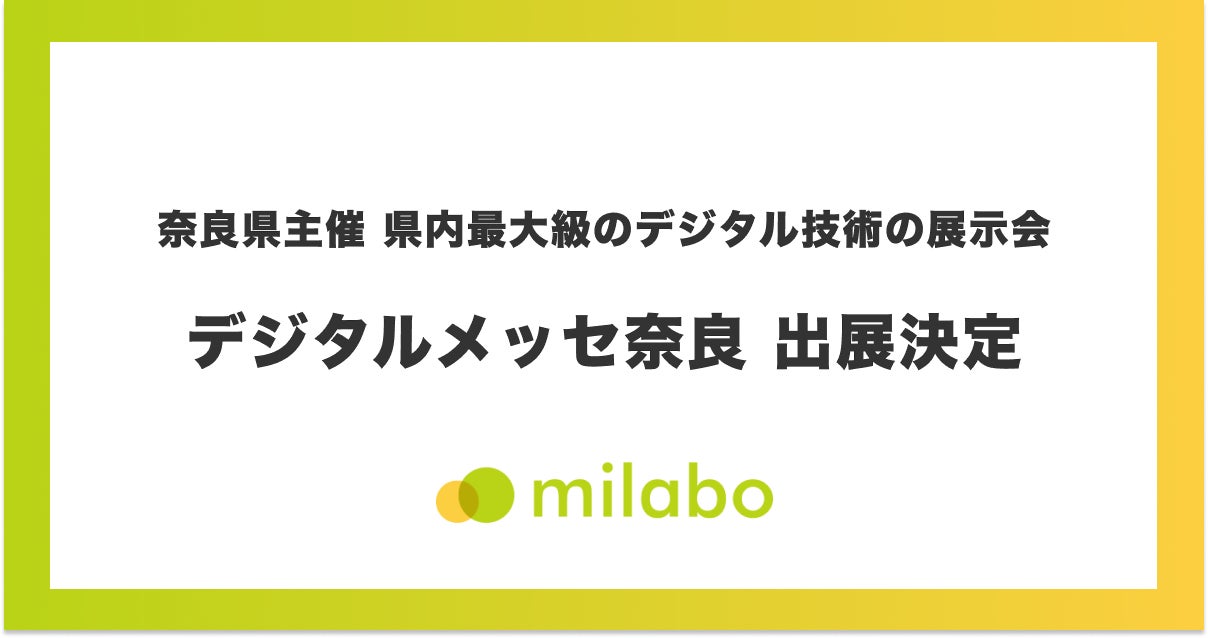 自治体向けサービスを開発する株式会社ミラボ(本社:東京都千代田区、代表取締役:谷川一也、以下「ミラボ」)は、2025年1月24日(金)奈良県コンベンションセンター(奈良県奈良市)で開催される「デジタルメッセ奈良」(主催:奈良県)に出展することをお知らせします。