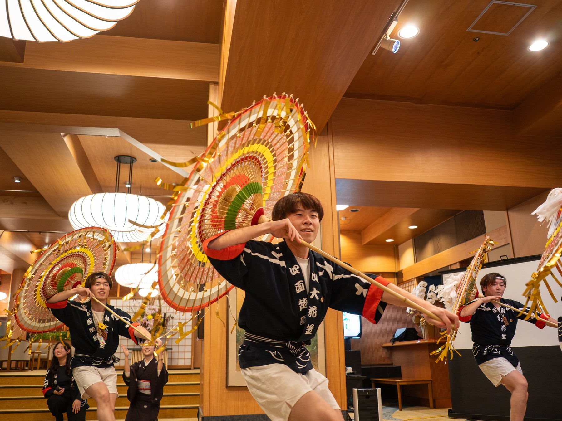 株式会社旅館古窯(本社:山形県上山市、代表取締役社長:佐藤 太⼀)が運営する⽇本の宿古窯は、地域の伝統工芸と文化の継承を目的とした「山形和傘プロジェクト」の一環として、2025年11月18日(火)、山形大学花笠サークル「四面楚歌」へオリジナルの和傘を贈呈し、その和傘を用いたショーを日本の宿古窯 1階ロビーにて実施いたしました。