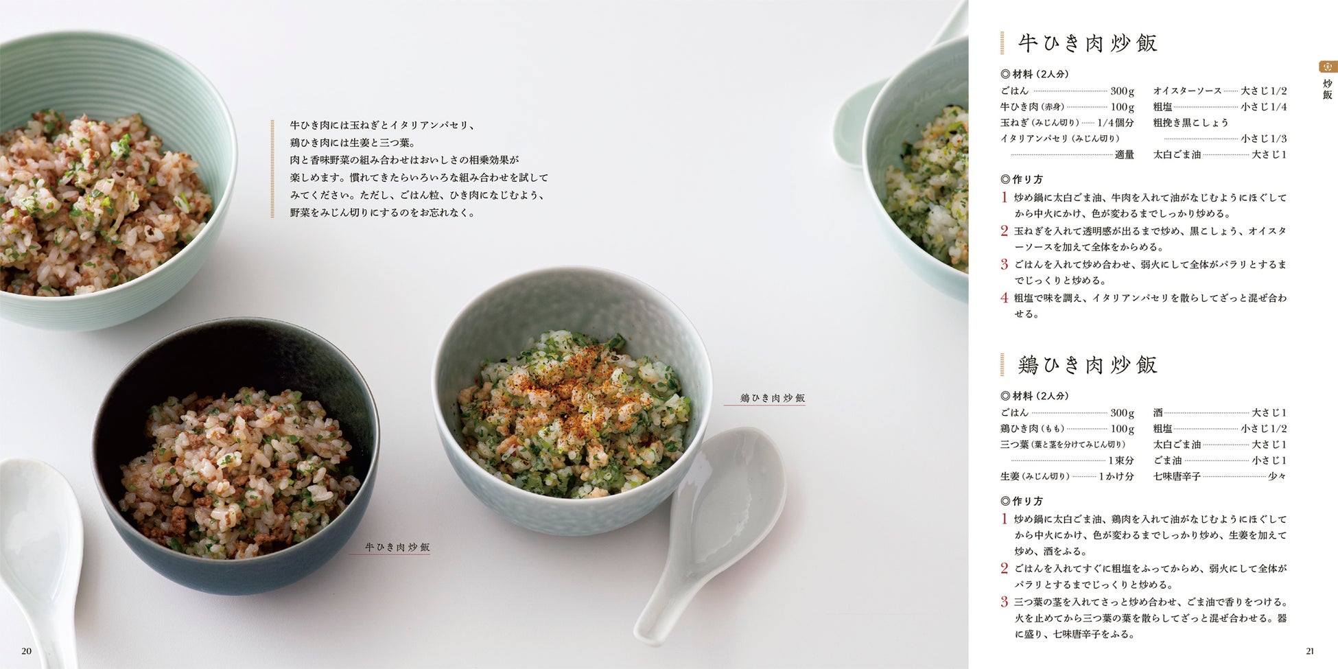 白いごはんを再び温めておいしく食べるための炒飯、たっぷりの水でお米の旨味を引き出すお粥。八宝飯、ちまきなどもち米のレシピも豊富です。