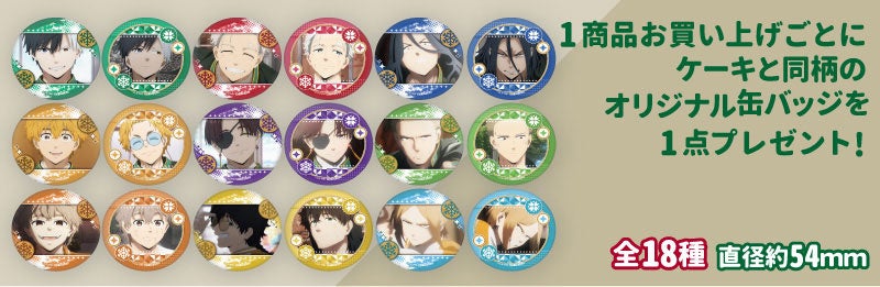 ケーキ1点ご購入に付き1つ、特典缶バッジをお付けいたします。