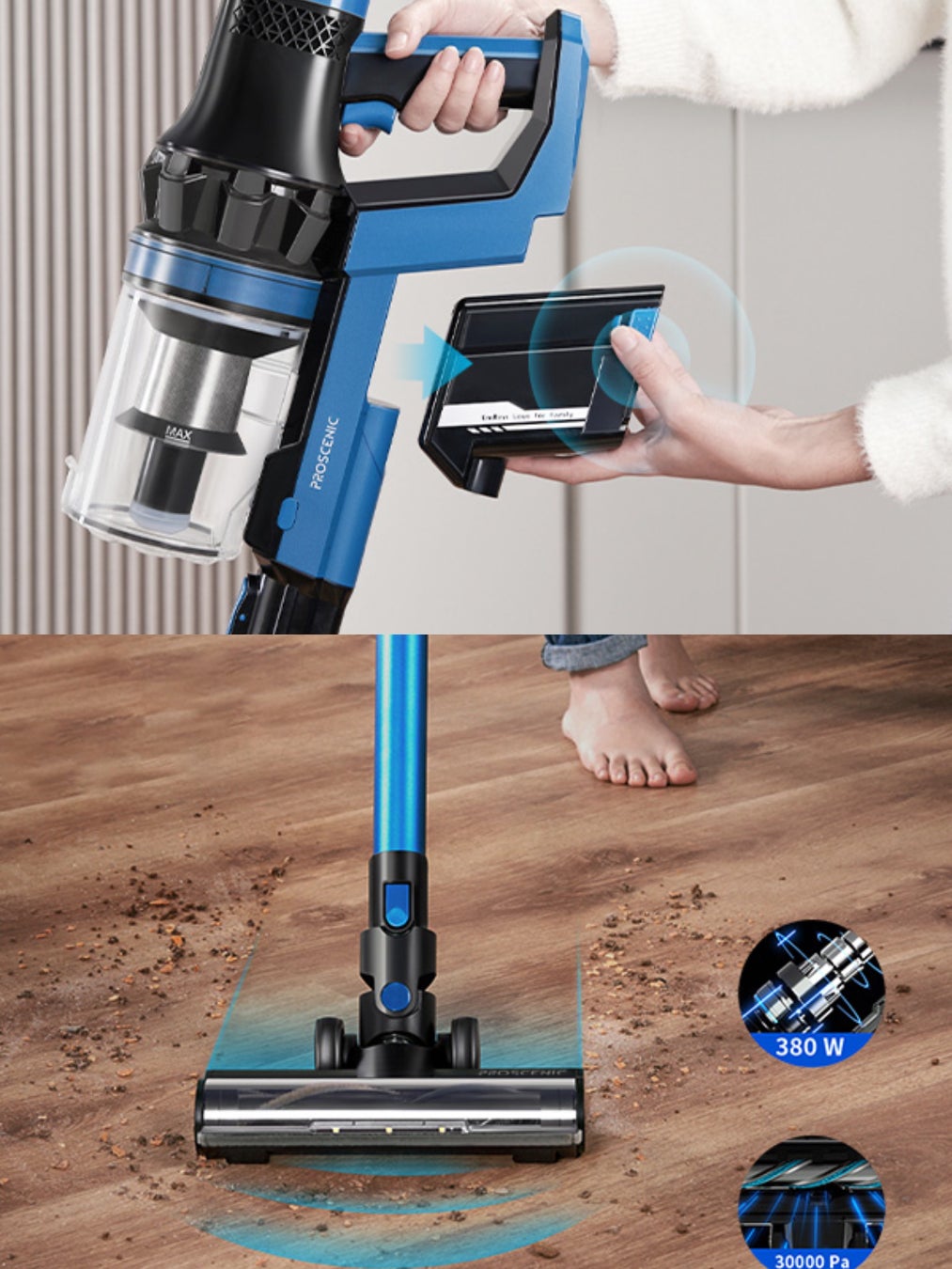Proscenic I10掃除機は、家庭やオフィスで使用するために設計された強力な掃除機です。吸引力30000paを誇り、8つの2200mAhバッテリー容量と交換可能なバッテリーにより、長時間の使用が可能です。充電完了後最大50分間使用可能なため、大きな部屋を掃除する必要がある場合でも、充分な使用時間を確保できます。