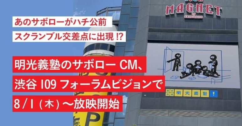 明光義塾、公式キャラクター「サボロー」のCMを渋谷109フォーラムビジョンで8月1日(木)より放映開始 勉強をきっかけに変わる子どもの成長を通じて、「『やればできる』の記憶をつくる」を発信