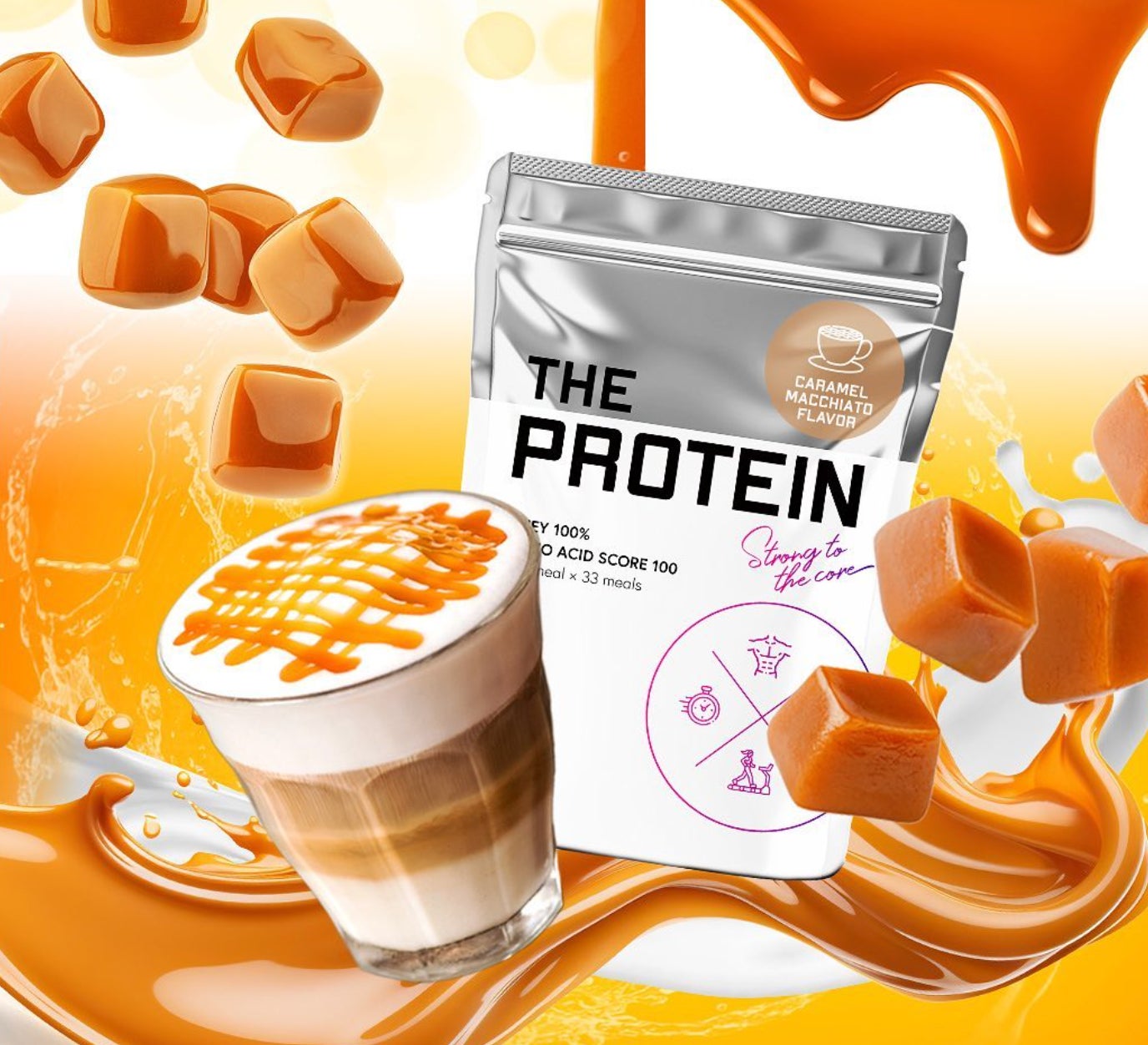 豊富なフレーバー展開でユーザーの心を掴むTHE PROTEIN(通称:ザプロ)からカフェでは定番メニューを商品化!!濃厚な甘さと程よい苦みがマッチする<キャラメルマキアート風味>数量限定で販売開始!!