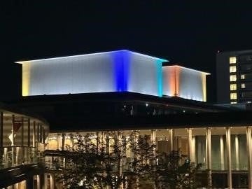 「第54回 日本腎臓学会西部学術大会」の開催を記念して、アクリエひめじを青色、水色、橙色、黄色の国際腎臓学会のイメージカラーにライトアップして、腎臓の大切さを広く啓発します。