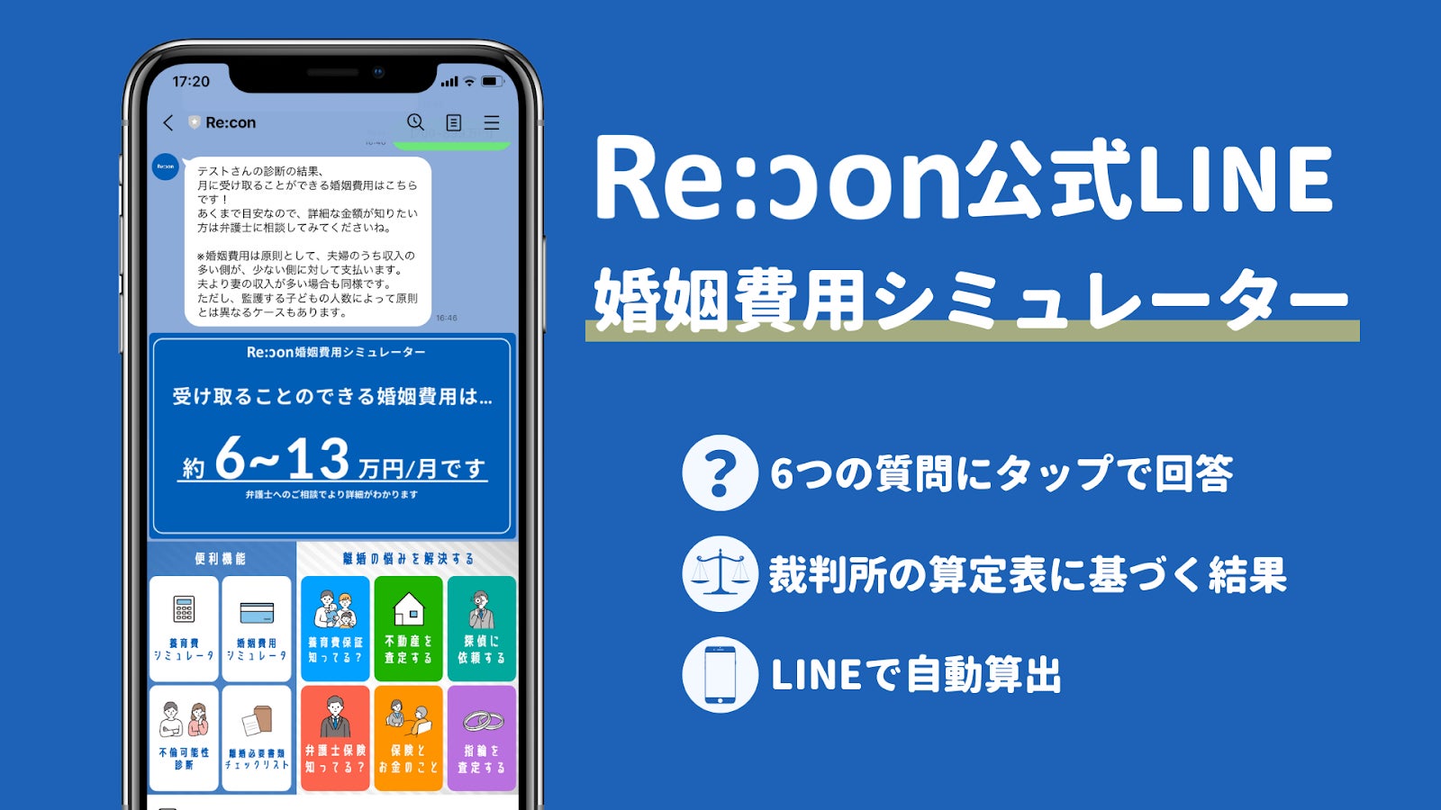 株式会社WonderSpace(本社:東京都港区、代表取締役:山本尚宏)が手掛ける離婚テック事業のサービス「Re:con(リコン)」の公式LINEより、別居から離婚までの間に発生する婚姻費用を簡単に計算できる新ツール「婚姻費用シミュレーター」をリリースしたことをお知らせいたします。