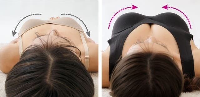 寝ている間や日常の動作で流れがちなバストも、一体型パッドでズレにくく、バストの広がりを抑えてくれます。