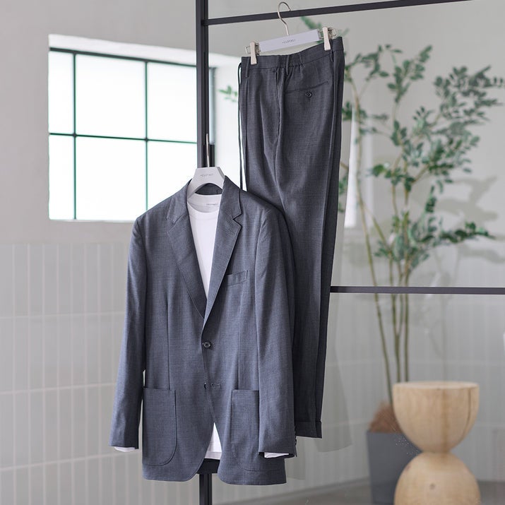 ウール本来の吸放湿性に加え、特殊加工によりウール100%ながらナチュラルストレッチ、接触冷感性に優れた多機能ウール素材TECHWOOL®トロピカルを使用したコレクションです。シャツ生地のように軽く、着ていることを忘れさせるほどの着心地を実現しています。