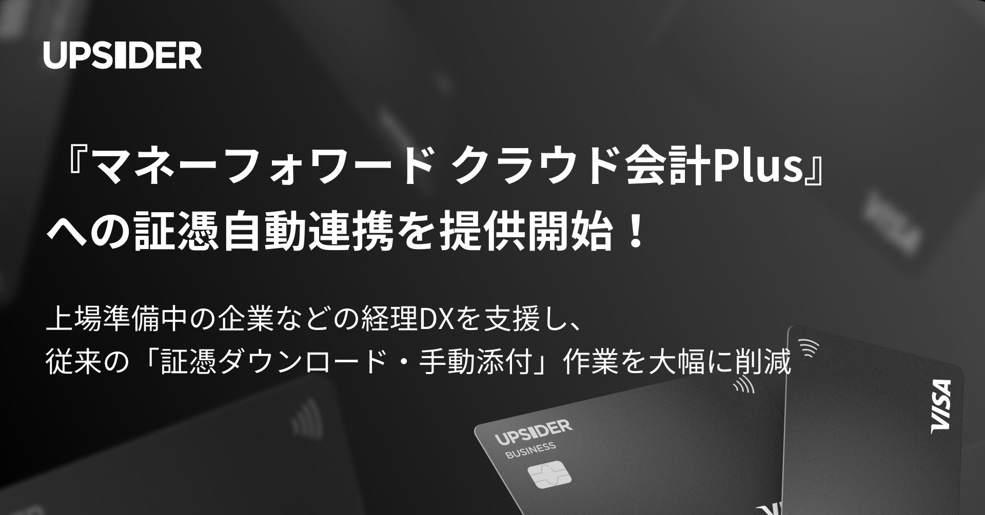 法人カード「UPSIDER」、『マネーフォワード クラウド会計Plus』への証憑自動連携を提供開始