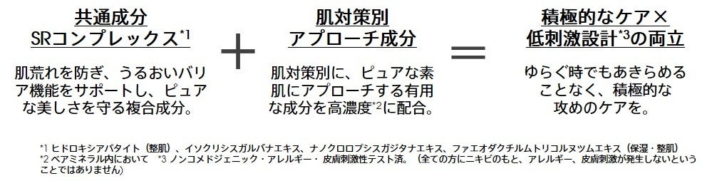 ■ シリーズ共通成分、SRコンプレックス*3により、肌荒れを防ぎ、うるおいバリア機能をサポートし、ピュアな美しさを守ります。