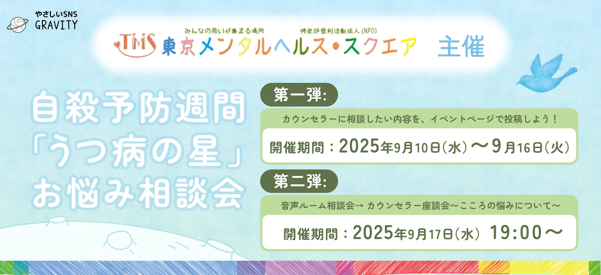【より生きやすいSNSにするためにvol.5】感じたことを相談してみよう「NPO法人 東京メンタルヘルス・スクエア」とGRAVITYアプリ内で自殺予防週間(25.09.10~16)「相談/質問会」開催