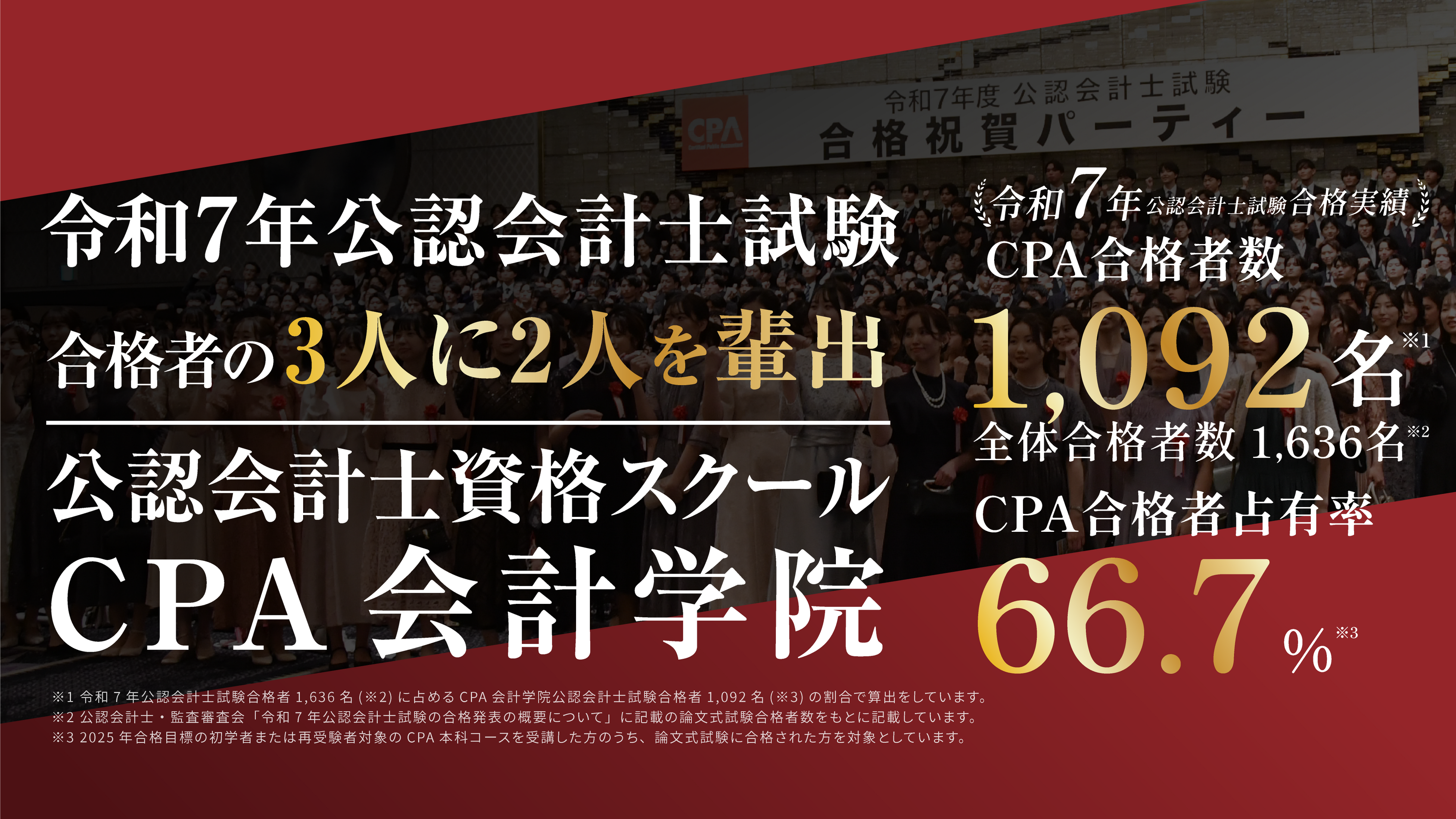 令和7年 公認会計士試験において、1,092名(全体合格者1,636名)の合格者を輩出し、